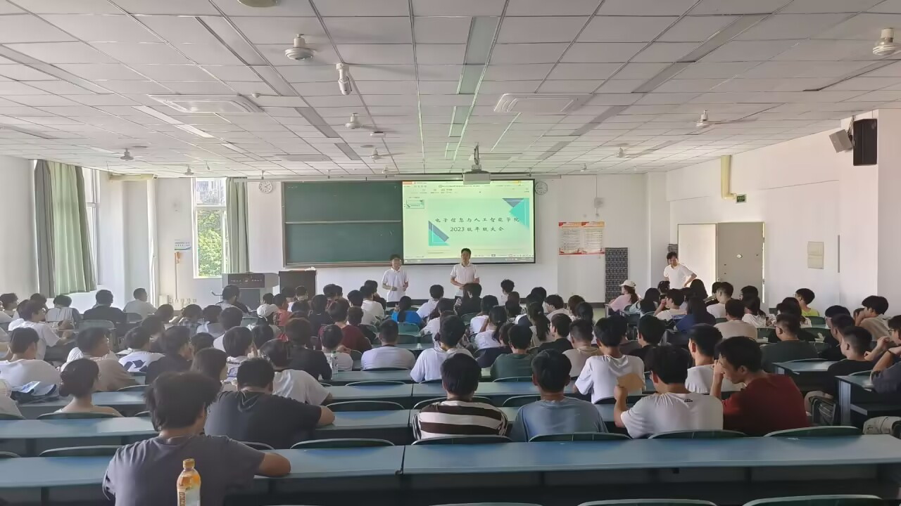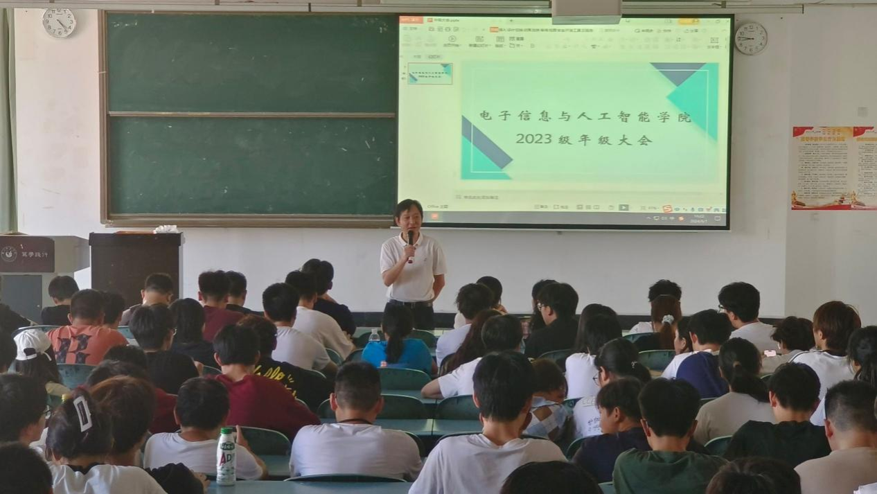 本网讯(文/张莎莎 图/姜星宇)为帮助同学们全身心投入新学期的学习生活,了解新学期的相关安排,9月1日,电子信息与人工智能学院在线上召开21级年级大会,行知楼201、225召开22级年级大会,行知楼301、325召开23级年级大会。本次会议由AI之家辅导员工作室主办,电智学院党委副书记李骏、分团委书记强光平、辅导员肖苗、狄红霞、王杰主讲,全学院各年级的学生共同参与。