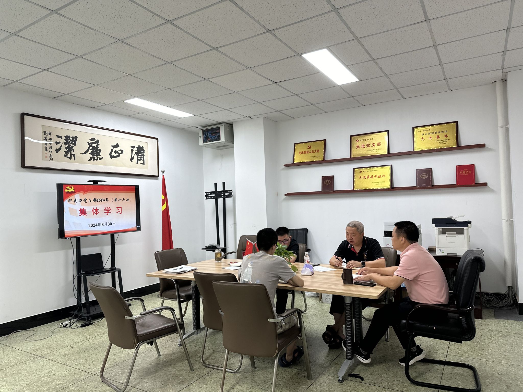 本网讯(文图/贾云强)8月30日,纪委办党支部在弘毅楼613开展2024年第十六次集体学习。