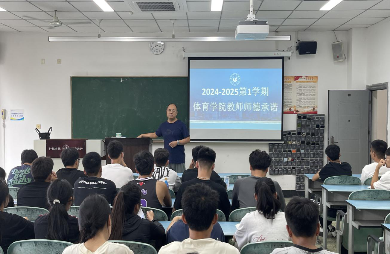 本网讯(文图/裴庚、关光富)为进一步加强学院师德师风建设,规范教师职业行为,全面提高教师师德涵养和教书育人责任感与使命感,按照学校《关于进一步加强和改进师德建设的实施意见》文件要求,体育学院组织号召广大教师以德立身、以德立学、以德施教,要求授课教师在新学期第一堂课开展师德承诺活动。