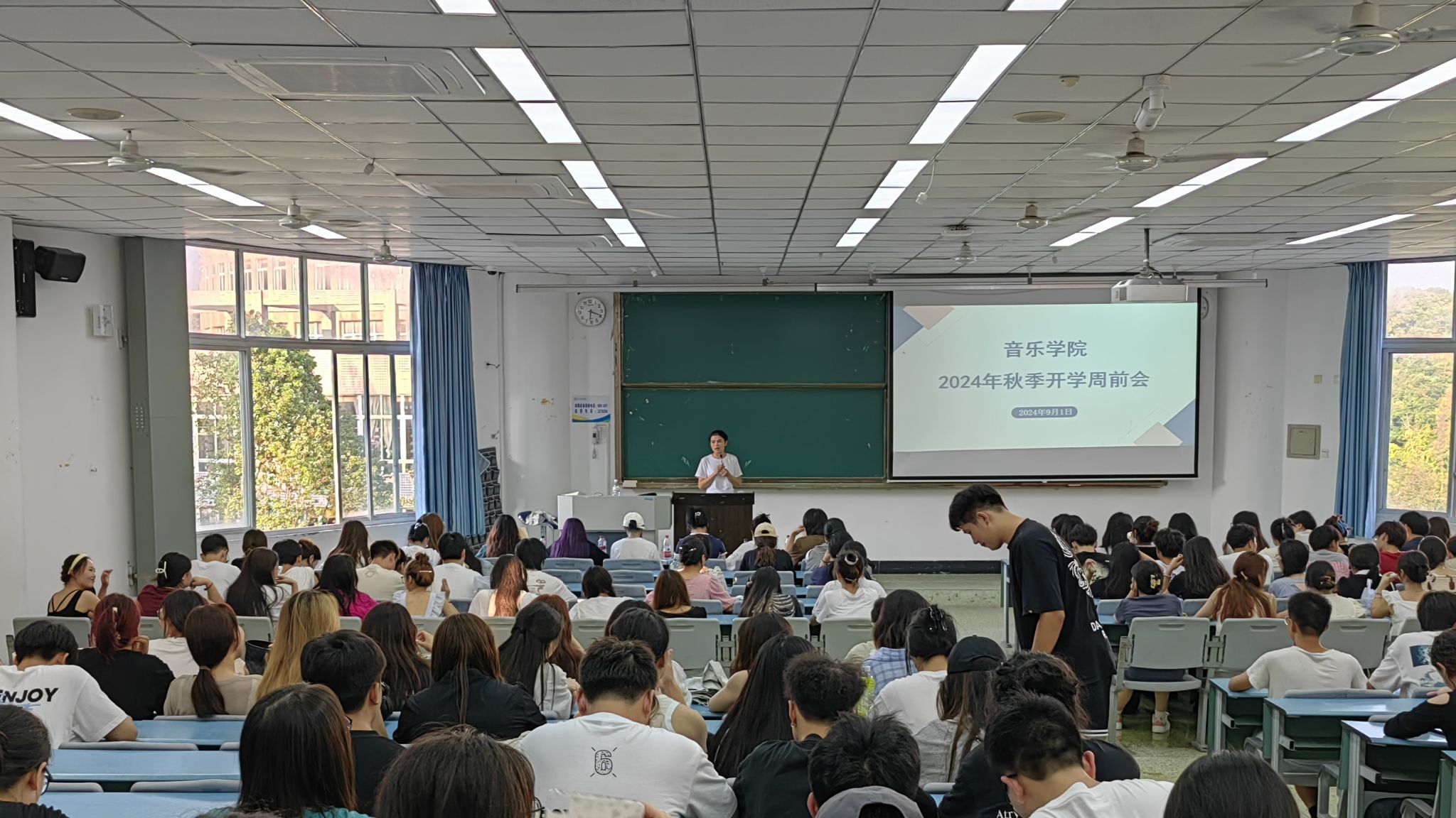 本网讯(文图/郭元红)9月1日—9月3日,音乐学院各年级、班级分别在行知楼和学院教室,开展2024年秋季开学年级、班级入学教育。音乐学院各年级辅导员、班主任主讲,全院学生共计581人参与。