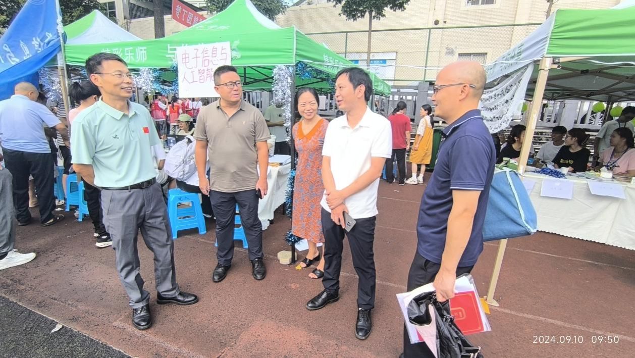 9月10日上午,电子信息与人工智能学院党委书记蒋强、党委副书记李骏、副院长黄果等一行到学院迎新点视察迎新工作。一方面院领导与在场的新生和家长们进行了亲切交流,询问了新生情况,对他们的到来表示欢迎,并祝福新生在本学院能够度过欢乐充实的校园时光。另一方面询问了志愿者们的工作情况、新生手续办理进度等,对学院迎新工作给予充分肯定。