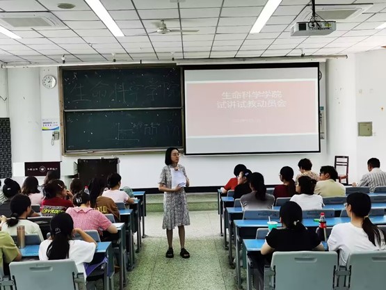 本网讯(文图/周钦)为提高师范生对试讲试教重要性的认识,强化授课训练,夯实师范技能。9月11日,生命科学学院在行知楼214召开2022级生物科学专业试讲试教工作动员会。动员会由学院副院长代发文主持,院长刘芳、教学督导刘超出席做动员讲话,试讲试教指导组老师及22级生物科学专业全体同学参与了会议。