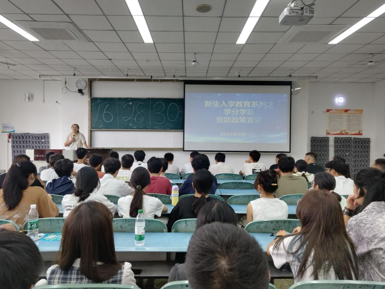 本网讯(文/张宇昊,图/胡炜凡)为进一步帮助新生们了解学分学籍、学校相关资助政策,9月12日,电子信息与人工智能学院在行知楼225组织开展学分学籍、资助政策宣讲活动,此次活动由2024级新生辅导员狄红霞主讲,全体新生共同参与。