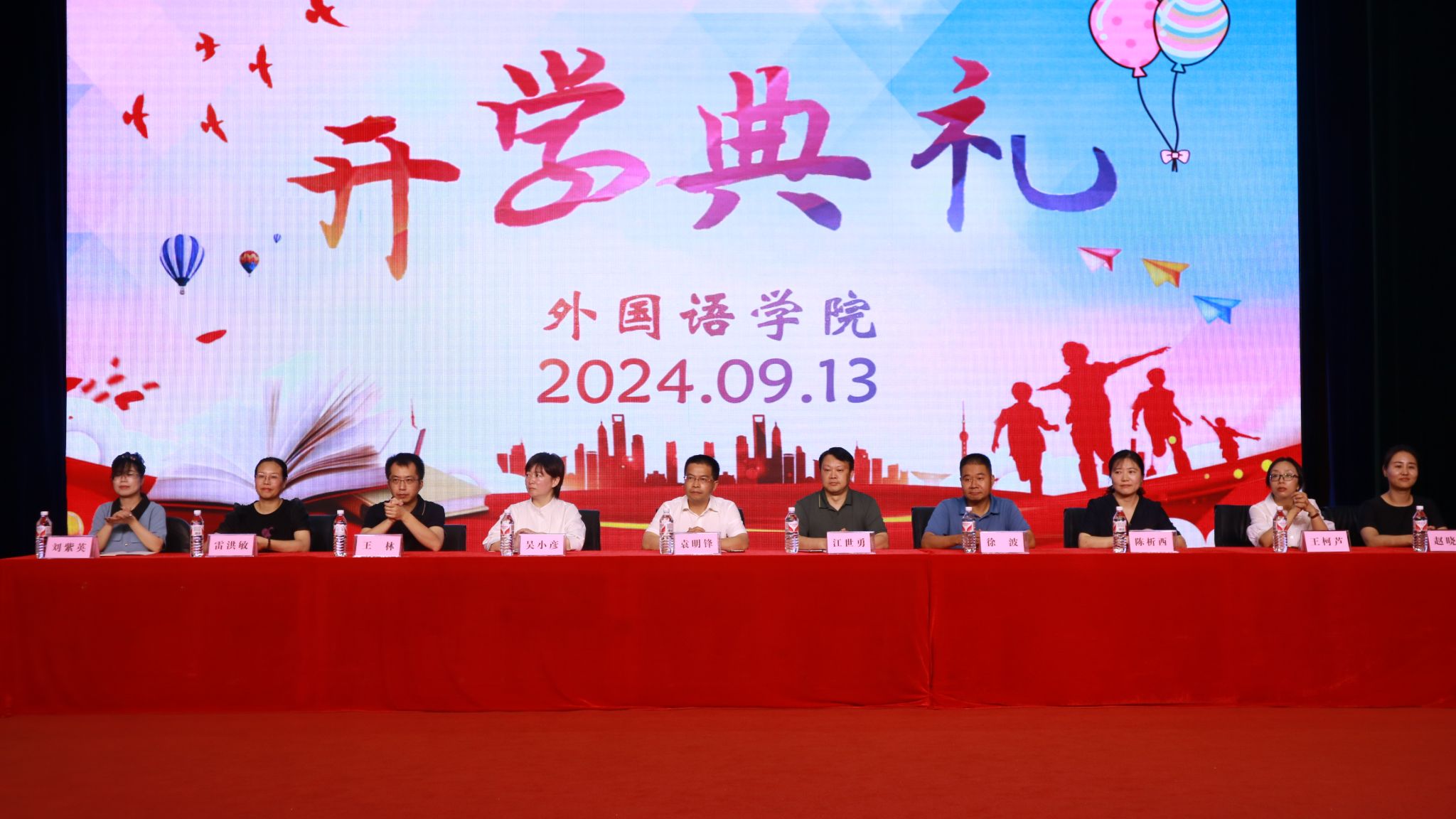 本网讯(文图/曹琳、汪健慧)秋高气爽,阳光明媚,9月13日,外国语学院在实训楼多功能厅举行了2024级新生开学典礼。学院党委书记袁明锋、院长江世勇、党委副书记吴小彦、副院长徐波、各系部主任、2024级班主任、全体辅导员以及275名新同学共同参加了本次开学典礼。典礼由学生工作办公室副主任曹琳主持。