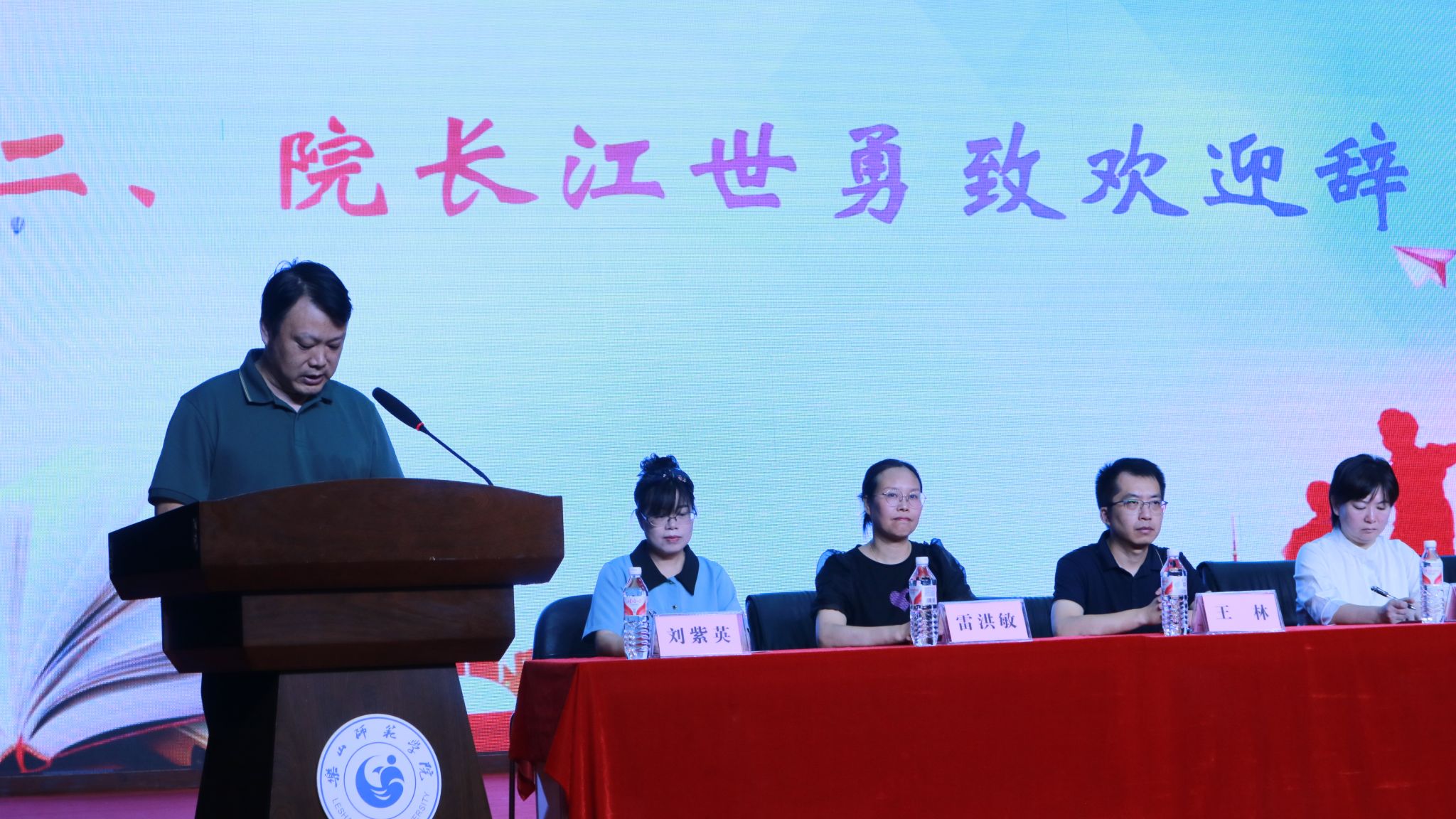 江世勇向新同学的到来表示热烈欢迎,简要介绍了学院的历史、概况及面临的发展机遇与挑战,并勉励同学们珍惜在乐师拥有的时光,保持勤奋、严谨、求实、创新、奋进的优良学风,牢记学校“弘毅自强,笃学践行”的校训,践行“学通中西,德行天下”的院训,不辜负祖国、亲人、老师的殷切期望,将来为母校、为祖国赢得更大的荣耀。