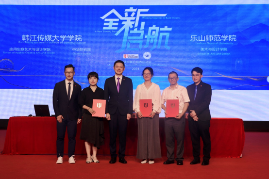 为了确保硕士联合培养项目的高质量实施,韩江传媒大学学院特别聘请了乐山师范学院美术与设计学院的院长熊火花教授、副院长门涛教授以及院长助理樊丁副教授作为联合培养导师并颁发聘书。三位导师纷纷表示将不负重托,以高度的责任感和使命感投入到联合培养研究生工作中,为两校学生提供优质的学术指导和专业支持。