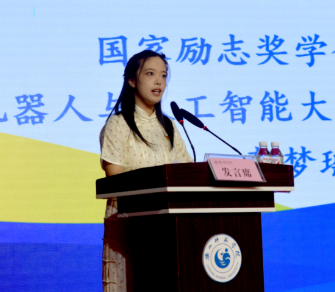 优秀学生代表李梦瑶分享了自己大学3年的学习实践经历,并给2024级新生们提出了一些个人建议。首先,要不断学习,摈弃“躺平”“躺赢”的不合理想法。其次,要走出宿舍,活动身体放松心情,为奋斗强化资本。最后,要积极参与学科竞赛和科研项目,争取站在未来的领奖台上,丰富大学生活。