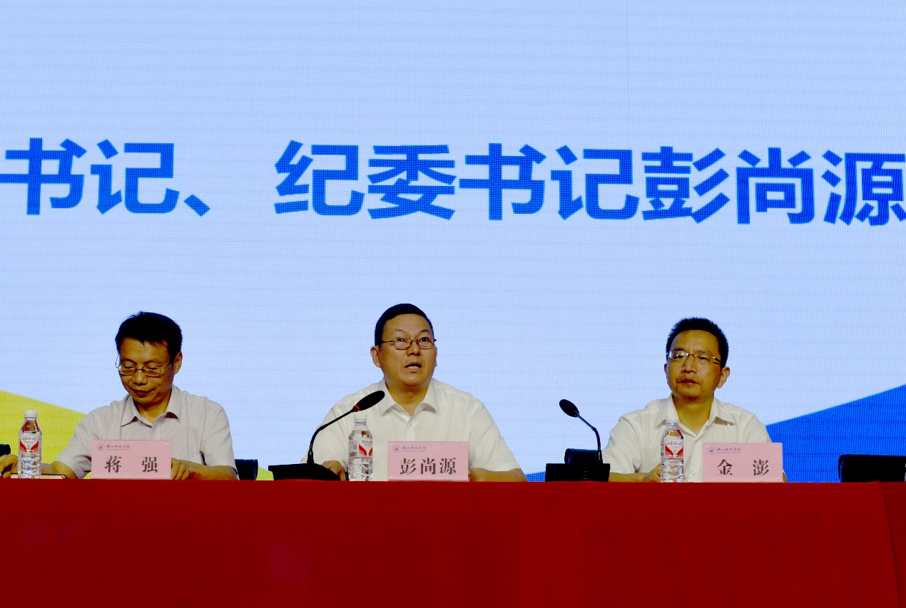 彭尚源希望同学们在人生新的赛道上奋力追寻自己的光荣与梦想,他对新生们提出几点期望:一是要学会学习,追求卓越。大学的学习不仅仅是知识的简单获取,更是培养能力和丰富心灵的过程,珍惜大学里面每一个学习的机会,学术演讲、图书馆以及看似与专业无关的课堂都能潜移默化的帮助你成长。二是要学会参与,全面发展。大家要积极参与丰富多彩的社会实践、公益活动和社团活动,培养帮助他人、服务社会的情怀,这不仅仅有利于开阔眼界、锻炼能力,更是在诠释担当和责任的含义。三是要学会宽容,完善自我。大家要学会在多样化的大学集体生活中学会宽容,学会理解,学会欣赏不同之美,从不同意见中寻找并建立共识,在对美好的不断追求中,实现自我完善和自我升华。