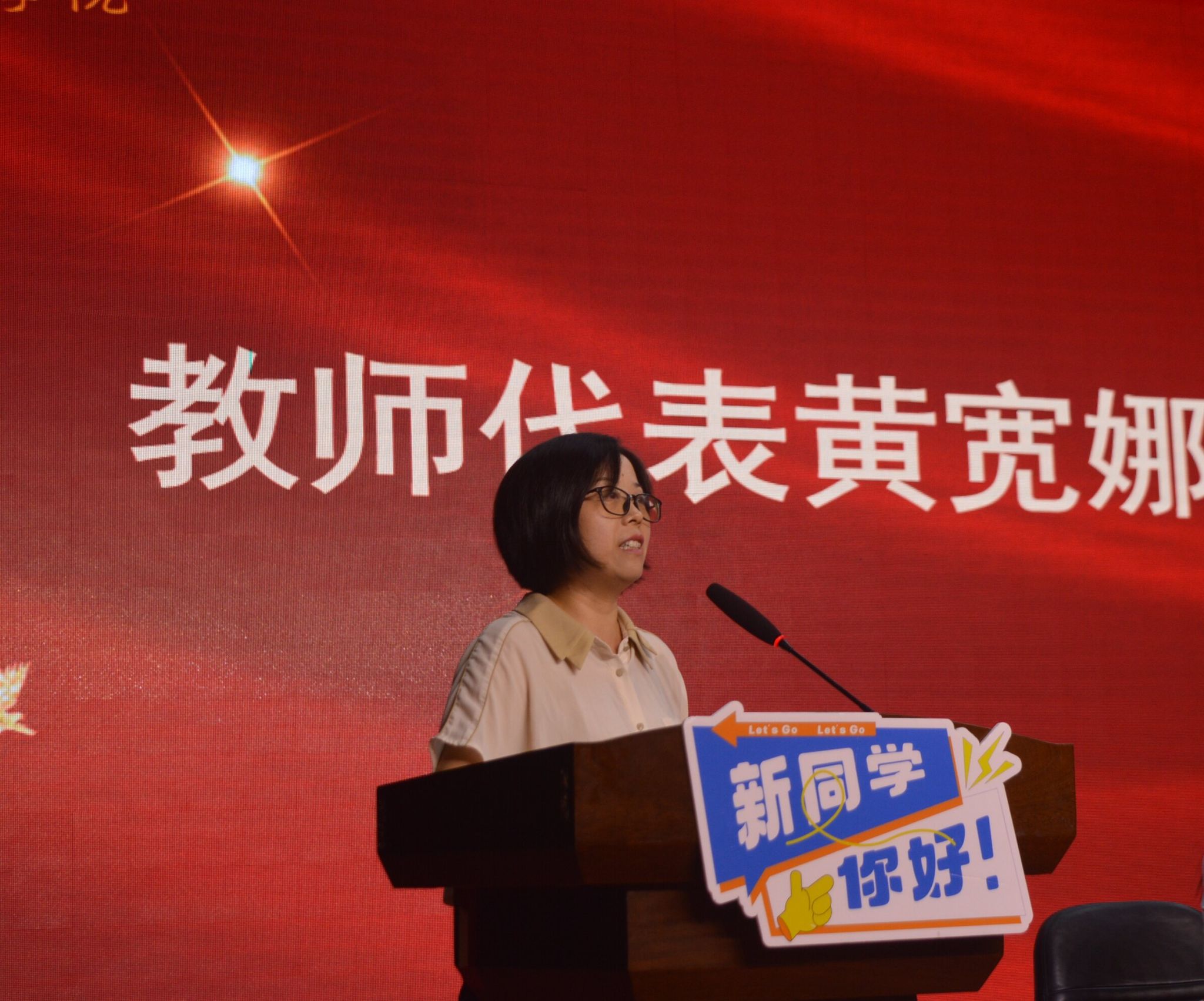 四川省优秀工会工作者、乐山市优秀党务工作者、乐山市“三八红旗手”、乐山师范学院第六届师德标兵黄宽娜老师作为教师代表发言。她认为,大学是博学之地,于学生而言,更多是“大人之学”,修品德、勤学业是大学生活的两大核心任务,勉励同学们锤炼个人品行,注重学习方法,培养创新思维,勇于探索未知领域。