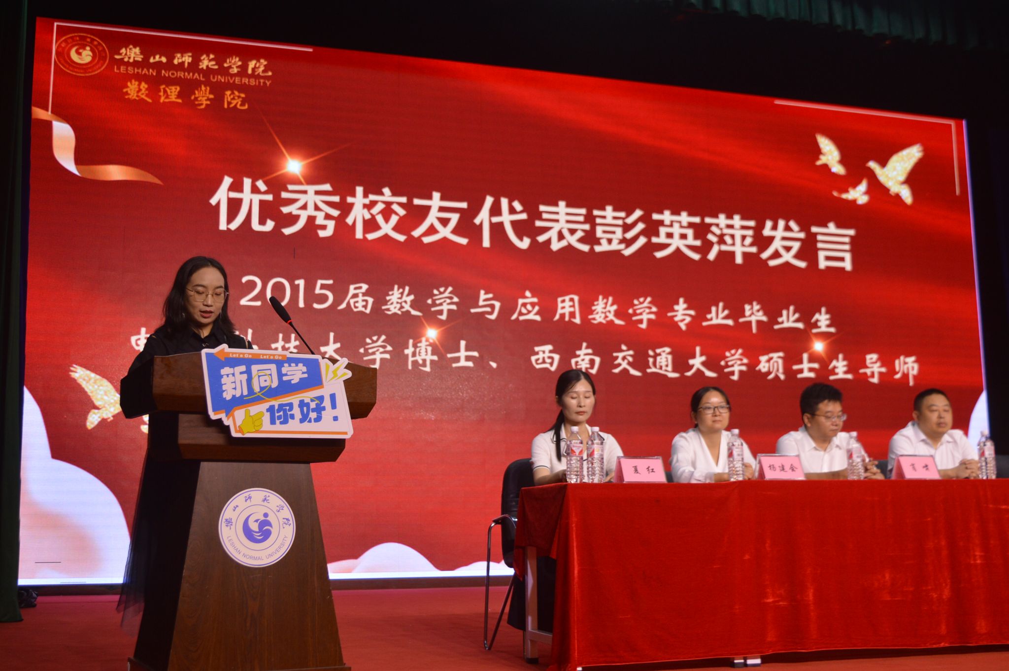 校友代表彭英萍表达了对学院真挚的祝福,讲述了自己的学习经历,分享了自己的学习方法、考研经验,为刚入学的学弟学妹们指明了努力的方向。