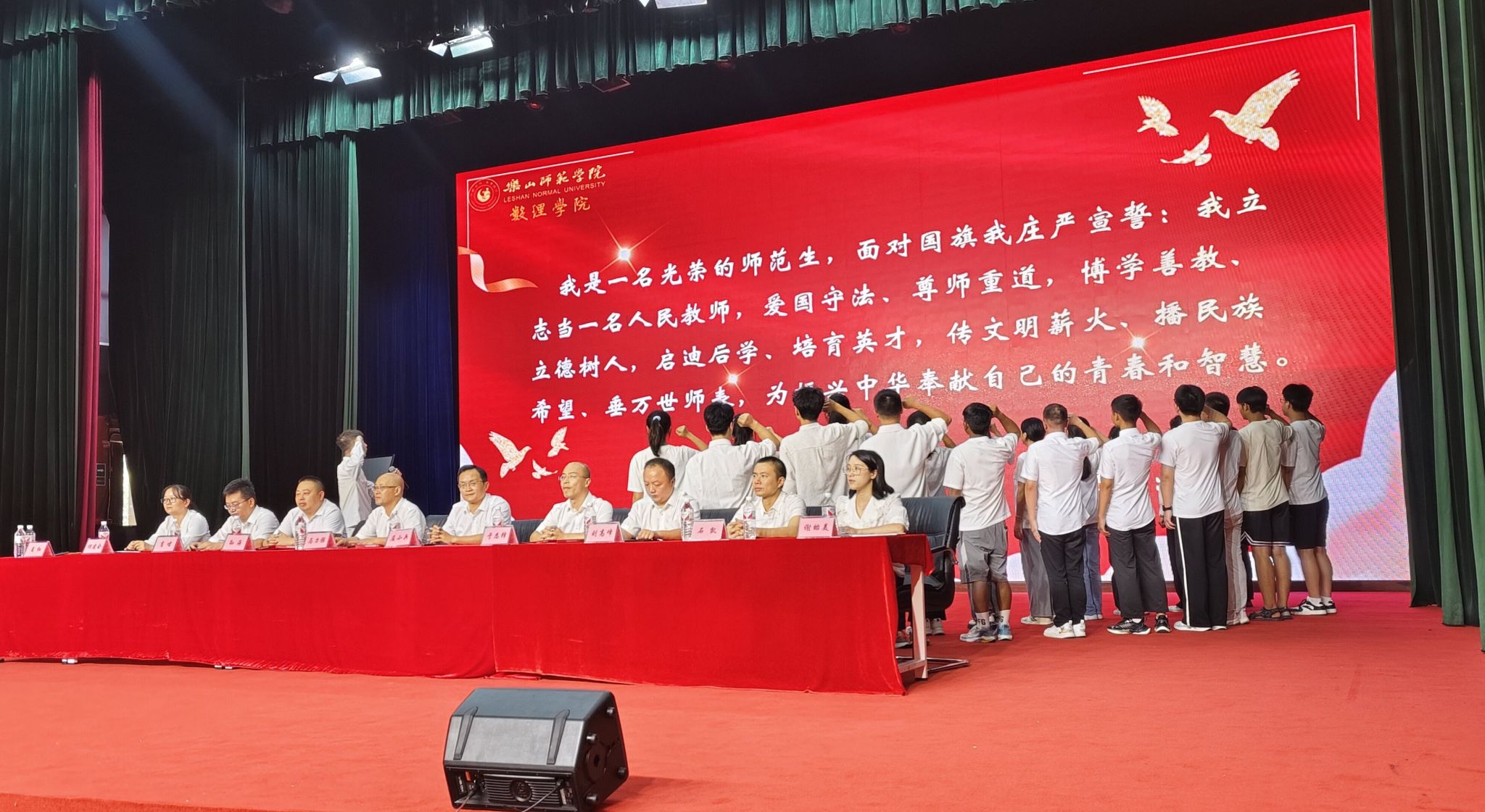 最后,学院283名师范生进行庄严宣誓,拳拳誓言中传递出未来教师请党放心、强国有我的信心和决心。