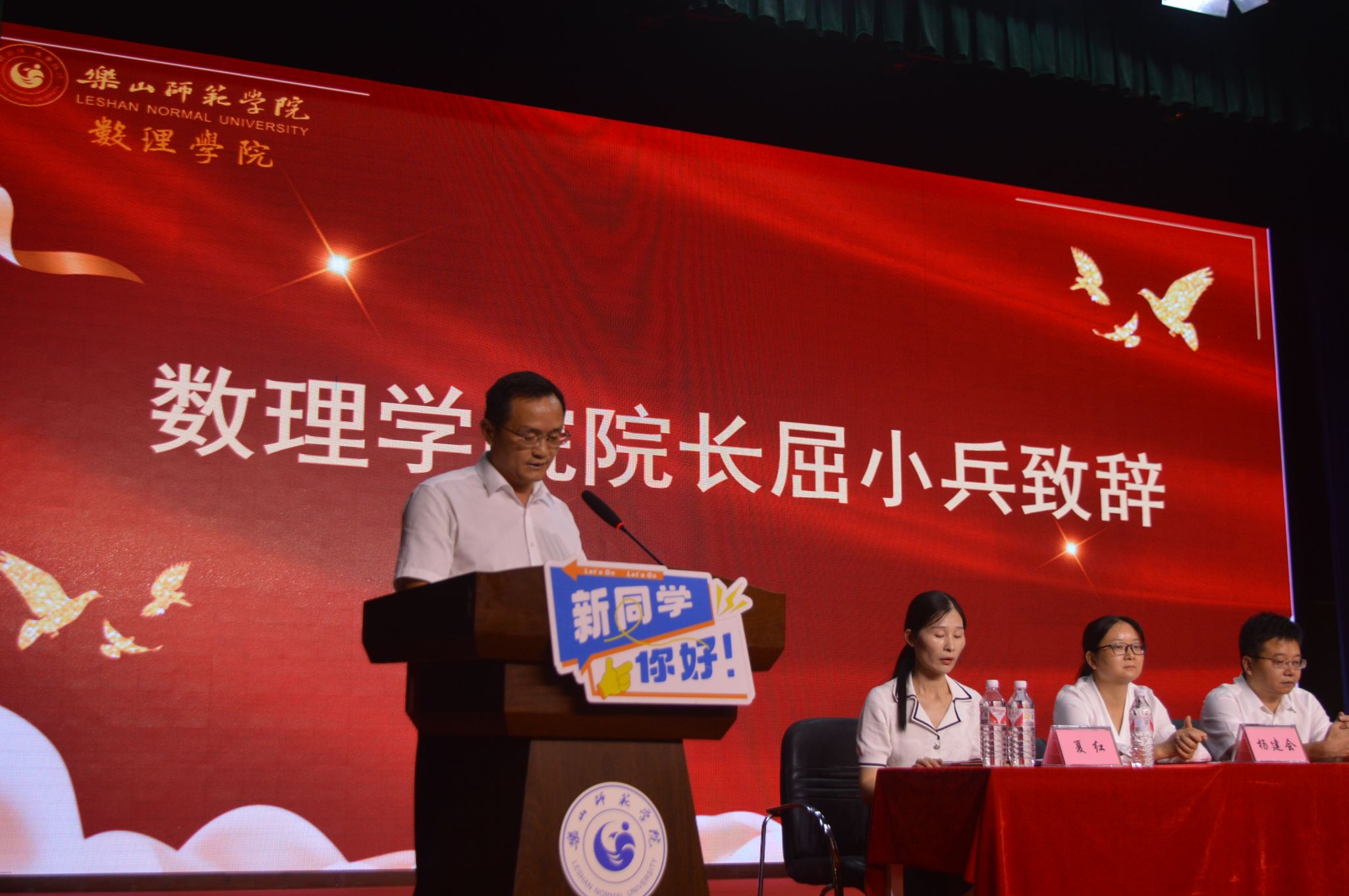 屈小兵致辞,他代表学院向2024级新同学的到来表示热烈欢迎,并对他们提出四点要求:一是学会做人,以诚信、友善为基石,做一个懂得感恩的人;二是学会学习,掌握科学的方法,成为具有扎实的专业基础、较强的实践能力、学习能力和创新能力的人;三是学会做事,注重实践锻炼,成为善于解决问题的人;四是学会生活,养成良好的生活习惯,成为身心健康的人。