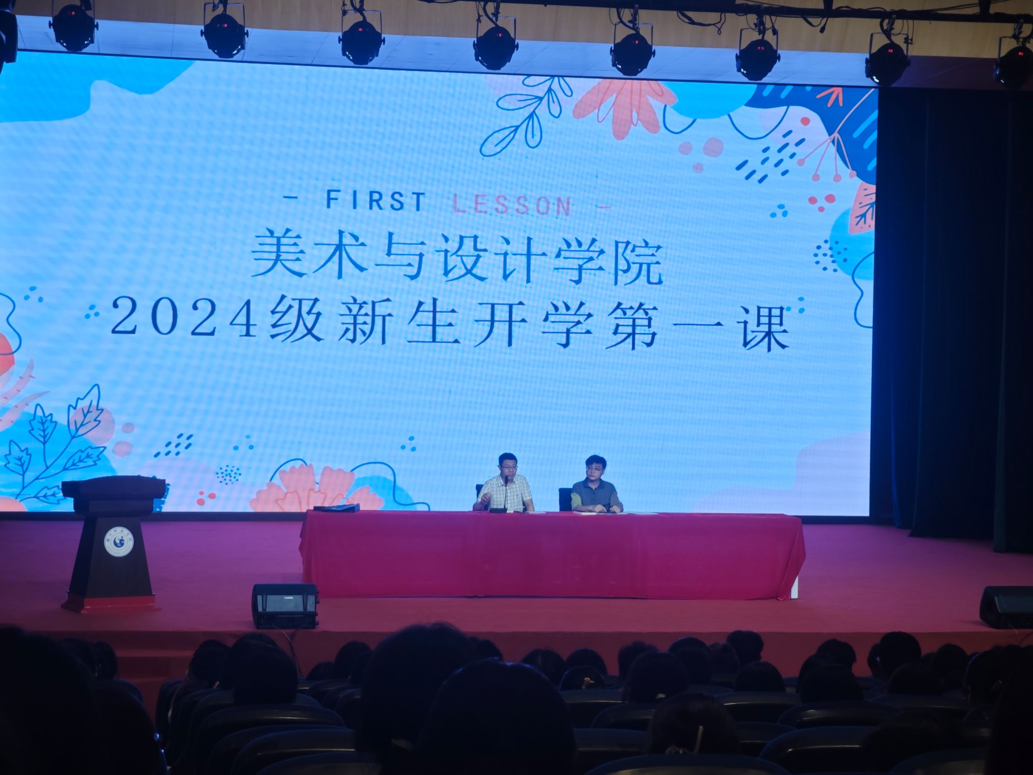 本网讯(文图/程语纯)为确保新生顺利适应大学生活,保障学生的安全与健康。9月14日下午4点,美术与设计学院在实训楼多功能报告厅举行2024级新生开学第一课暨假前安全教育大会,学院党委副书记赵元、24级辅导员伍金威、24级新生代班们以及全体2024级新生参加了此次大会。