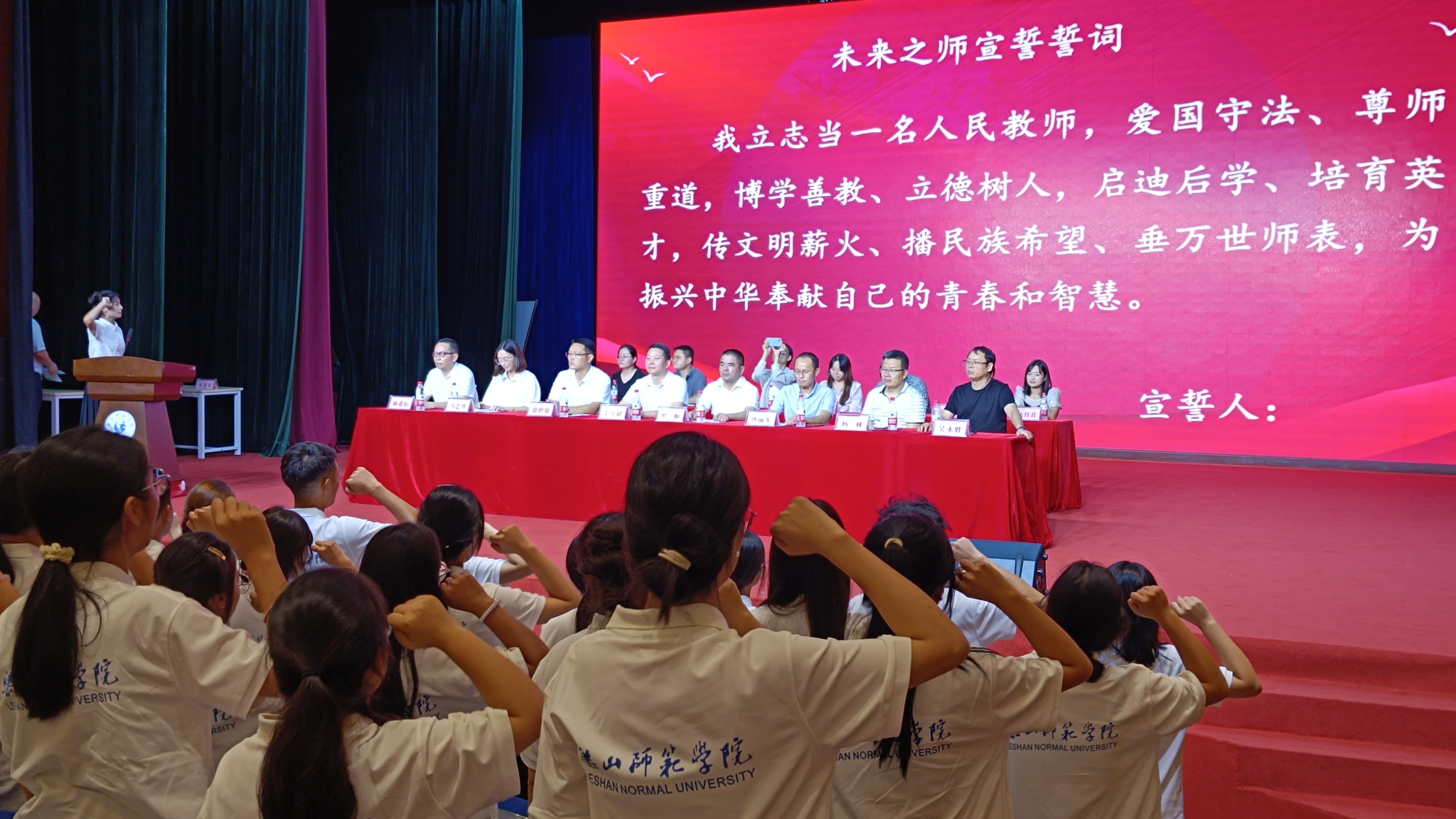 典礼最后,由杨斯淇带领全体2024级新生进行“未来之师”宣誓,大家紧握右手,铿锵有力地宣示着教育理想。愿同学们在未来可以成为一名优秀的人民教师,传文明薪火、播文明希望。