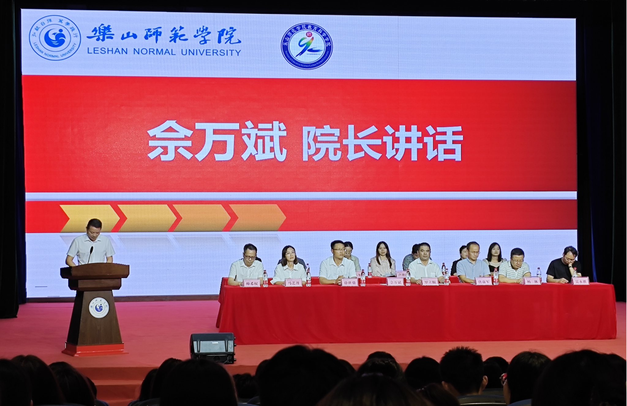 本网讯(文/杨思露 图/学院传媒)季秋已至,篇章新启。9月14日下午,教育科学学院在实训楼多功能厅举行了2024级新生开学典礼,学院院长佘万斌、学院党委书记罗立顺、学院党委副书记何晓军、副院长徐世鼎、副院长唐前军、副院长马艺丹出席,学院新生班主任及行政、教务、学工老师参加,开学典礼由何晓军主持。