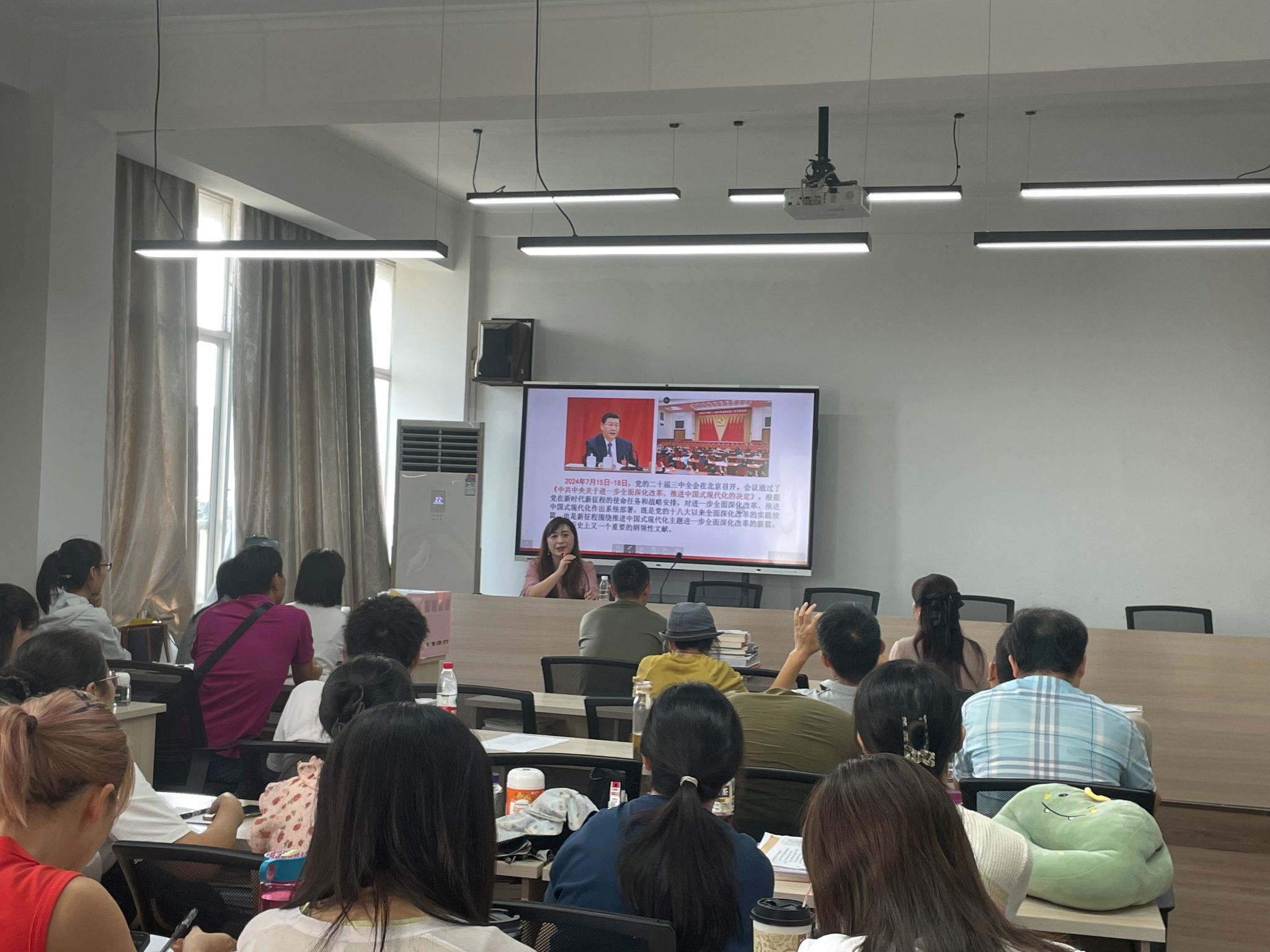 本网讯(文/李荣刚 图/陈丽娟)9月26日下午,美术与设计学院在旷怡楼705会议室开展党的二十届三中全会精神学习宣讲,特邀马克思主义学院教师杨红主讲。美术与设计学院全体教职工参加学习。宣讲会由美术与设计学院党委书记王孝琴主持。