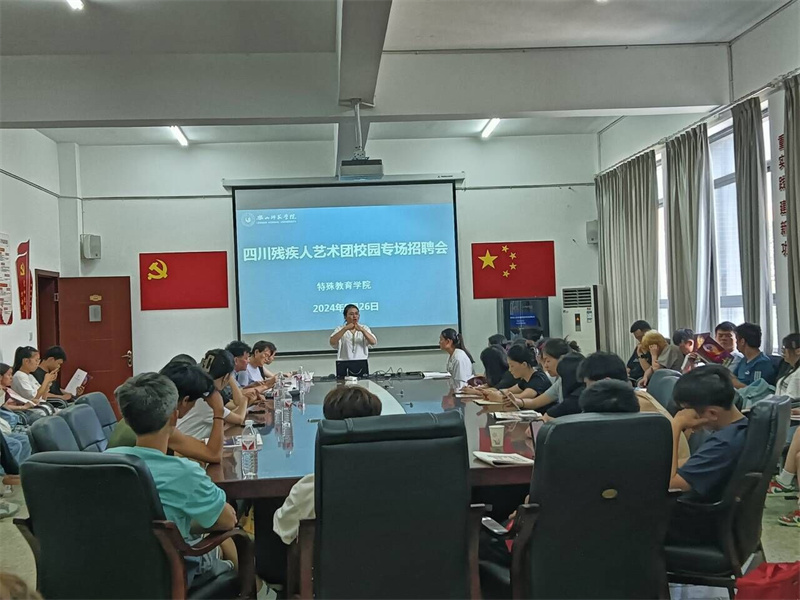 活动伊始,四川残疾人艺术团的团长详细介绍了艺术团的发展历程、团队文化、艺术成就及未来规划,强调了艺术团在促进残疾人艺术发展、提升残疾人社会融入度方面所做出的不懈努力和取得的显著成效。他表示,艺术团致力于发掘和培养更多有艺术天赋的残疾人才,为他们提供展示才华、实现自我价值的平台,同时也期待通过此次招聘会,能够吸纳更多优秀的特殊教育学院毕业生加入,共同推动残疾人艺术事业的繁荣发展。