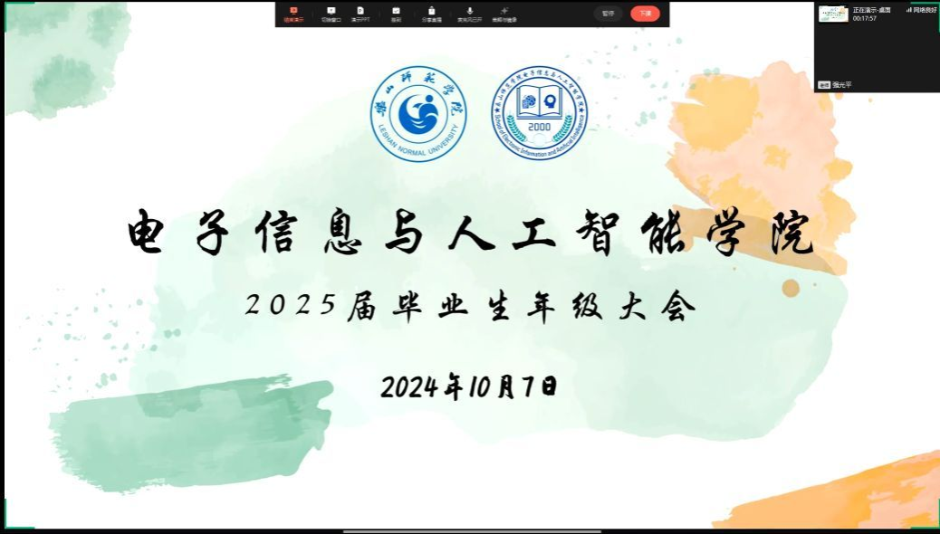 本网讯(文/姜星宇、图/姜星宇)为了确保学生按时返校并尽快投入到学习状态,同时方便后续奖助工作的顺利开展。10月7日,电子信息与人工智能学院在线上和行知楼召开了国庆收假年级大会,本次会议由AI之家辅导员工作室主办,由分团委书记强光平、辅导员肖苗、狄红霞、王杰主持,学院全体学生共同参与。