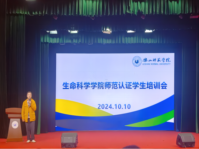 本网讯(文/罗燕、沈芝芳 图/杜明洁)为推动教学工作高质量发展,扎实推进师范类专业认证工作,持续提高师范生人才培养质量,10月10日下午,生命科学学院在实训楼多功能厅举办2024年师范类专业认证学生专题培训会,会议由学院党委副书记包天骏主持、外国语学院专业负责人王柯芦老师主讲,各年级辅导员及学院生物科学专业全体学生参加。