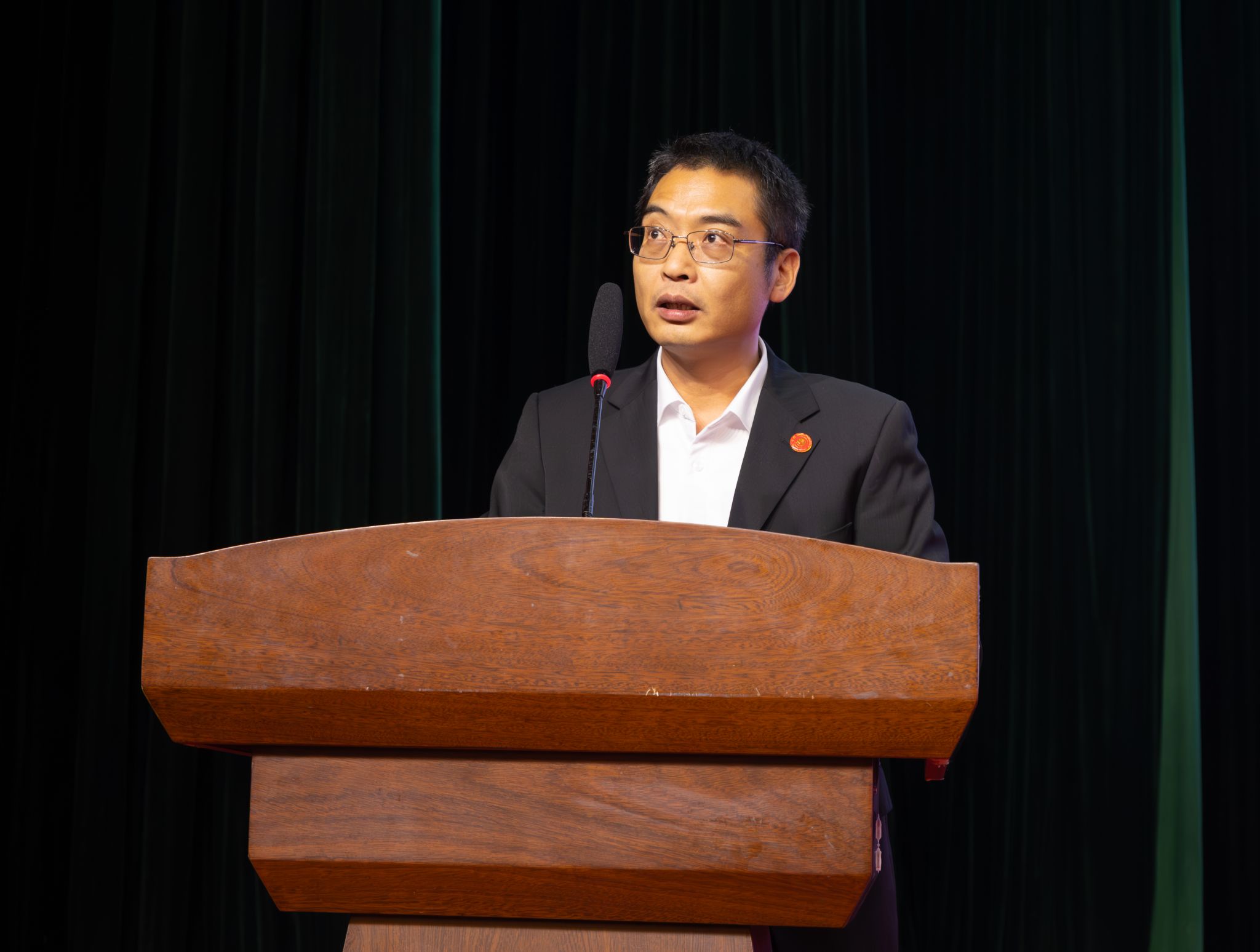 最后,优秀校友代表四川省委宣讲团新时代文明实践青年宣讲分团成员、四川师范大学博士研究生林航作为校友代表发言并带领大家学习了党的二十届三中全会精神。他以《中共中央关于进一步全面深化改革、推进中国式现代化的决定》中构建支持全面创新体制机制、统筹推进教育科技人才一体发展为切入点,向大家阐述了教育科技人才作为中国式现代化的基础性、战略性支撑,深化教育综合改革、科技体制改革和人才发展体制机制改革的重大意义和主要方面。同时,结合自身的成长经历,他鼓励同学们积极练就过硬本领,将最美之青春融入推进强国建设、民族复兴伟业的历史洪流中,奋力书写为中国式现代化挺膺担当的青春篇章。