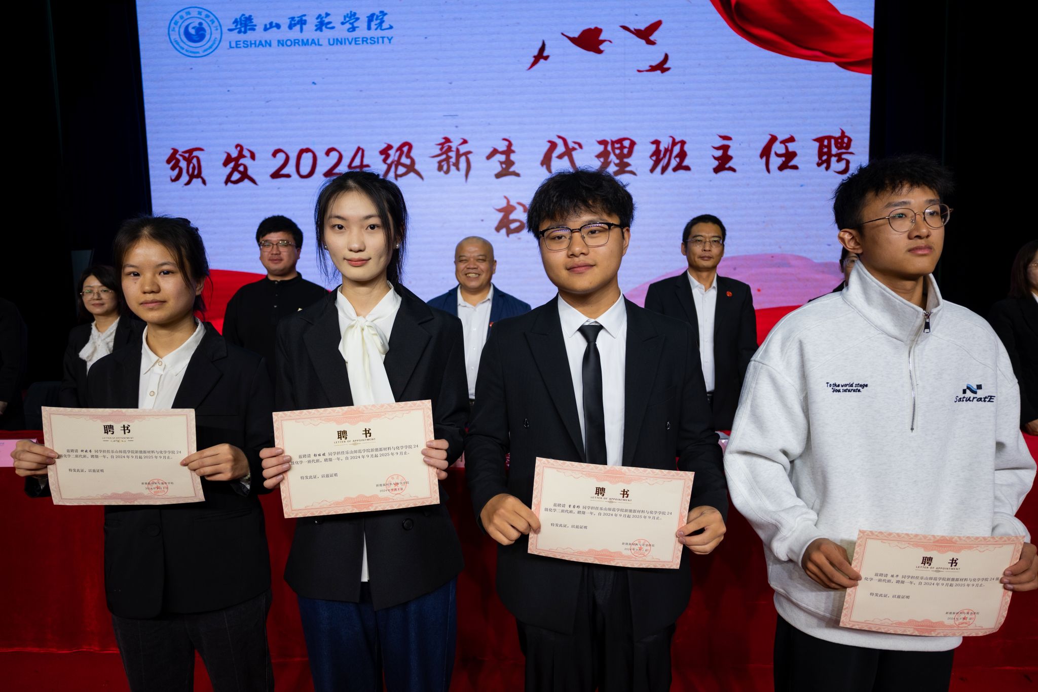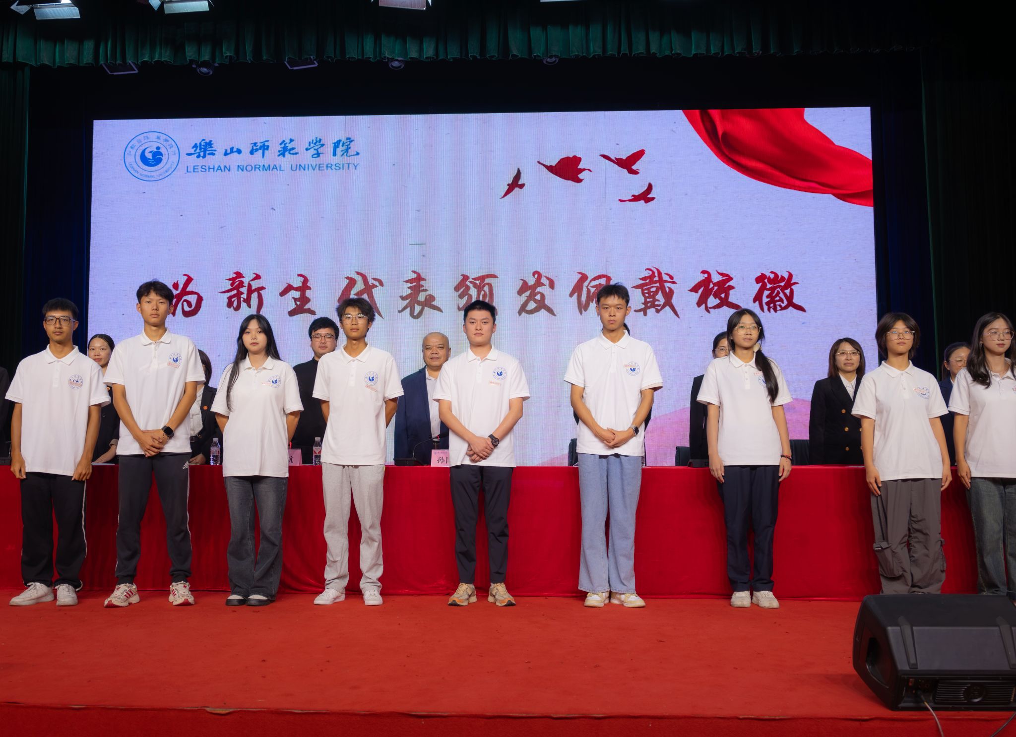 随后,彭丽嫒作为在校生代表,鼓励同学们把握当下,勇于肩负使命,期待他们能够在大学生涯中成为自己的英雄。张之香代表全体新生承诺:在接下来的学习中一定信念、脚踏实地,求真学问、练真本领,扣好人生的扣子,书写人生的精彩。典礼高光时刻,学院领导亲手为新生代表戴上校徽,其他同学互相佩戴校徽,这一刻,标志着他们正式成为了“乐师人”的一份子。仪式简朴而庄重,材化新人将承载着学院的荣耀与期望,踏上全新的求知之旅。