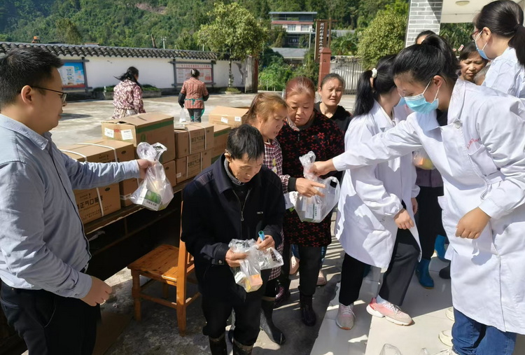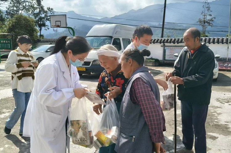 本次活动为村民们送去了感冒药、跌打损伤药、胃肠道用药、钙片等常用药品以及碘伏等消毒用品,开展了义诊和健康宣传活动。针对老弱病残行动不便村民,医务人员还挨家挨户上门诊疗,免费为村民测血压、测血糖,发放药品并做好用药指导,发放宣传册,宣传高血压、糖尿病、艾滋病、流感等疾病相关知识。