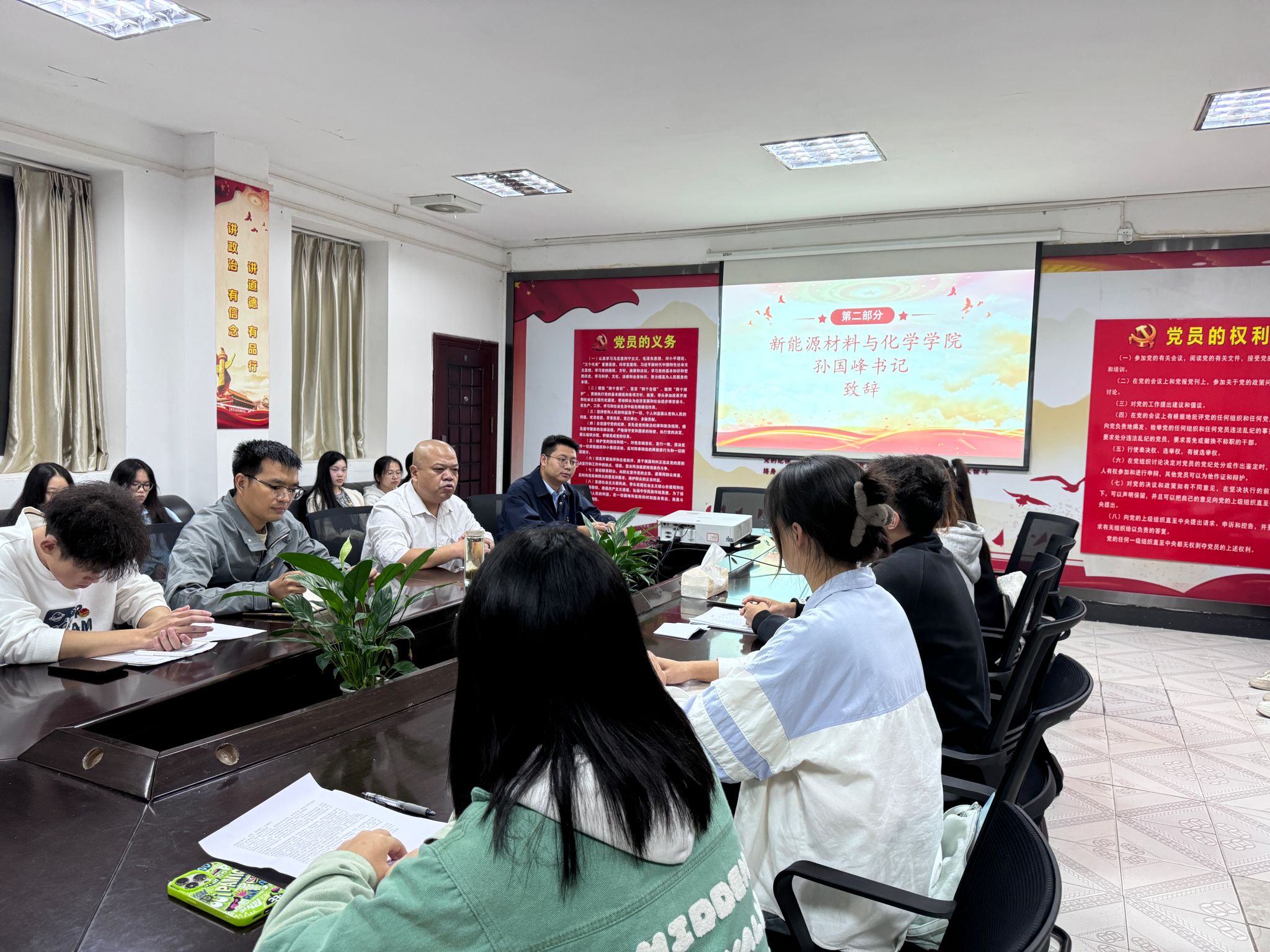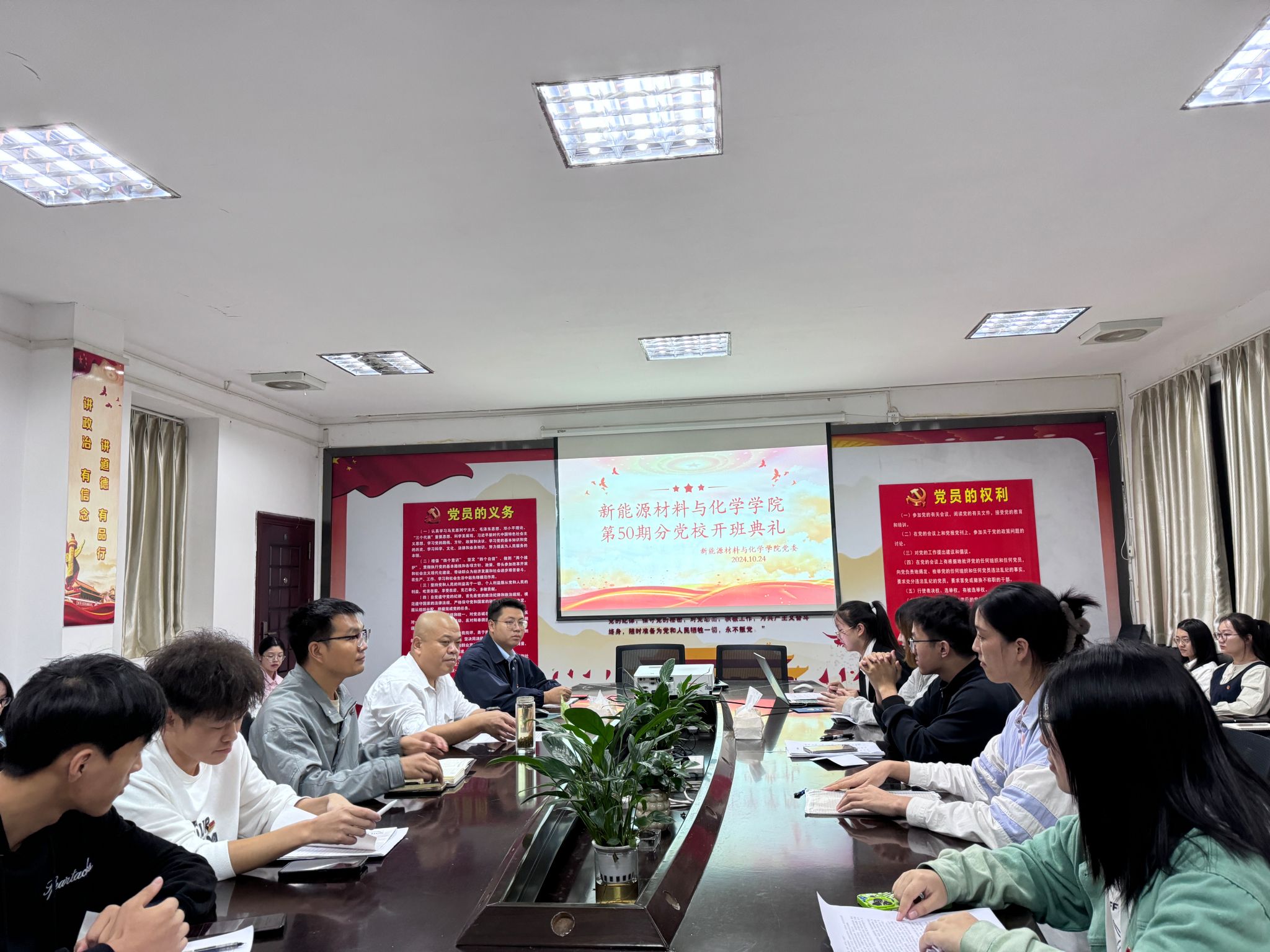 本网讯(文/钟晓芬、闫胜利 图/杨月玲)为了增强入党积极分子的政治理论素养与思想道德品质,并使其牢记入党的初衷与使命。10月24日晚,新能源材料与化学学院在学院二楼会议室隆重举行第50期入党积极分子开班典礼。参加此次典礼有新能源材料与化学学院党委书记孙国峰、专职组织员闫胜利、环境工程学生支部书记冉茂裕、学生党员代表以及全体入党积极分子。