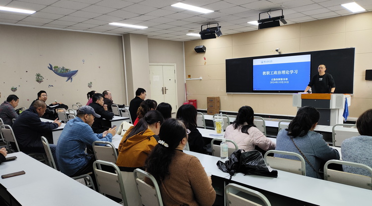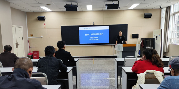 本网讯(文图/代成刚)10月24日,后勤保障服务部组织在编和人事代理员工在弘毅楼504B教室召开员工大会,开展教职工政治理论学习。会议由后保部党总支书记林天兴主持。