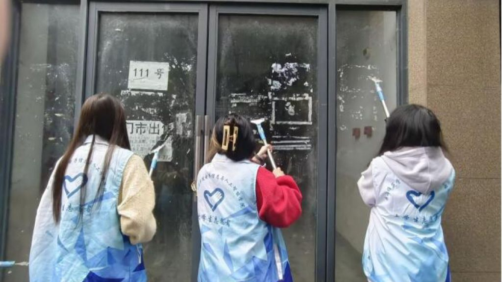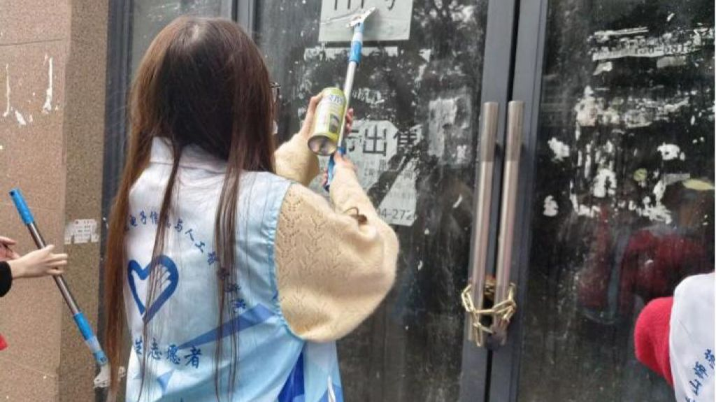 活动当天,电智学院的志愿者们身着统一的服装,准时来到青果山社区。在社区工作人员的指导下,志愿者们迅速分组,并领取了相应的劳动工具。一组志愿者分发扫帚,迅速投入到清扫活动中。他们手持扫帚,沿着社区的街道、小巷,仔细清扫着地面上的垃圾、落叶和尘土。在他们的辛勤努力下,社区的街道变得干净整洁,焕然一新。与此同时,另一组志愿者则负责清除墙面老旧、不得体的广告。他们对社区沿街店铺、电线杆、配电箱、楼道、住户门口等可视范围内乱贴乱画的小广告进行拉网式清理。行动中,大家拿着铲子、刷子、喷壶等工具,仔细铲除每一处牛皮癣,不放过任何一个死角。在志愿服务的过程中,志愿者们不仅展现了高度的责任心和团队合作精神,还积极与社区居民沟通交流,了解他们的需求和意见。