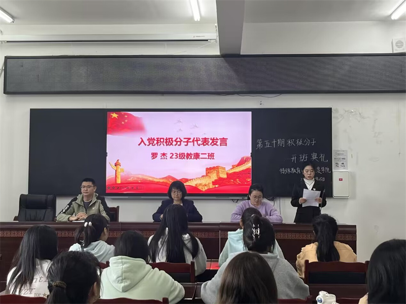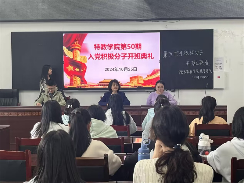 本网讯(文图/黄月)10月25日中午,在特殊教育学院、康复学院A栋406举行了第50期入党积极分子开班典礼。此次典礼由李晓畅主持,特殊教育学院、康复学院党委副书记兰芳、专职组织员朱以荣以及第50期入党积极分子共同参加了此次典礼,典礼由李晓畅主持。
