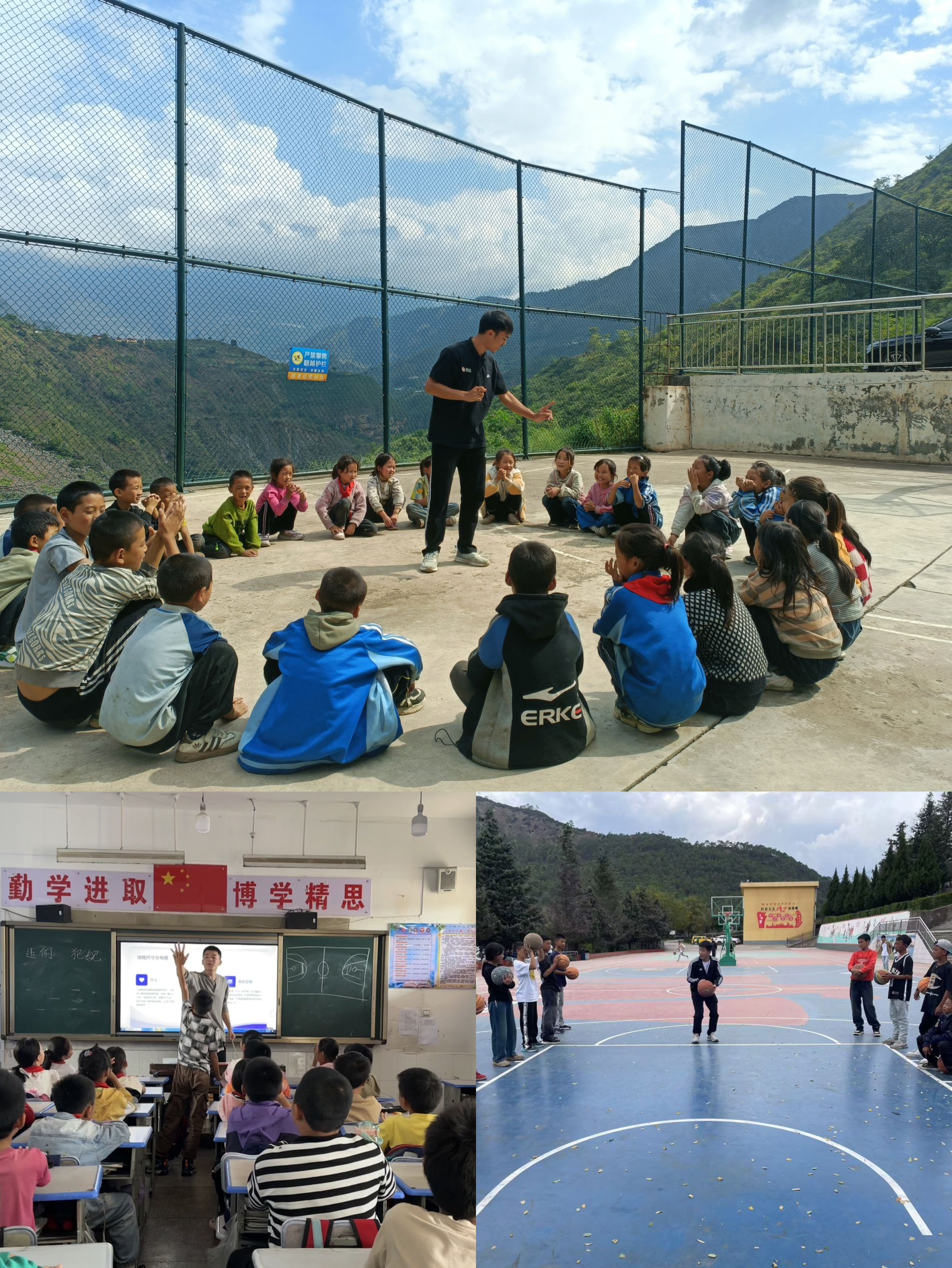 9月20日至今,43名志愿者到达凉山昭觉、会理、盐源各个学校支教已有一月之久,他们早已习惯了当地的生活。在凉山昭觉、会理学校的体育课上,志愿者为孩子们示范篮球动作,从基本的运球到复杂的投篮技巧,通过简单直观的方式让孩子们掌握基本动作。他们的身影成为了校园里一道亮丽的风景线。