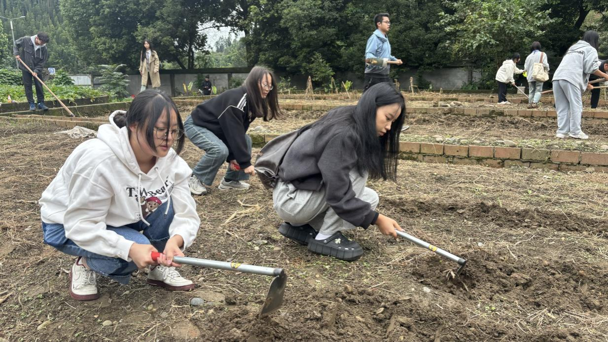 本网讯(文/王杰,图/吴佳旺))古人云“人生天地一蘧庐,耕凿虽劳乐有余”,为进一步加强同学们对传统农耕文化的理解,切身感受劳作的过程,10月26日,由学校劳动教育中心主办,来自电子信息与人工智能学院的30名同学,来到学校“智耕梦园”劳动教育体验基地,开展以“躬耕学农事,实践觅真知”为主题的劳动教育课校外实践活动。