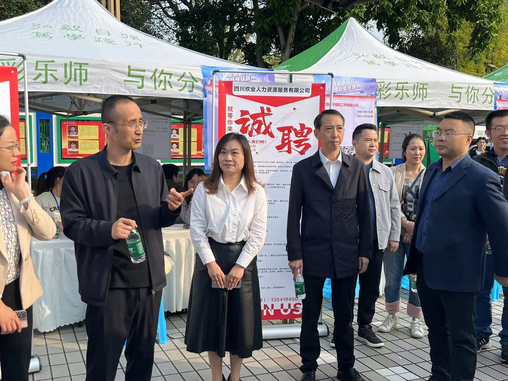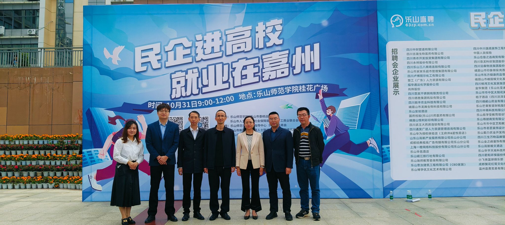 本网讯(文/李月 图/廖盛荣)10月31日上午,我校在北校区桂花广场举行2025届毕业生“民企进高校就业在嘉州”乐山民企进高校招聘会。本次招聘会由乐山师范学院、乐山直聘主办,得到了乐山市委统战部、乐山市人力资源和社会保障局、乐山市工商业联合会等的大力支持,相关部门领导到会场指导工作,各教学院领导班子、毕业班辅导员现场走访用人单位,走近学生、关心毕业生求职情况。