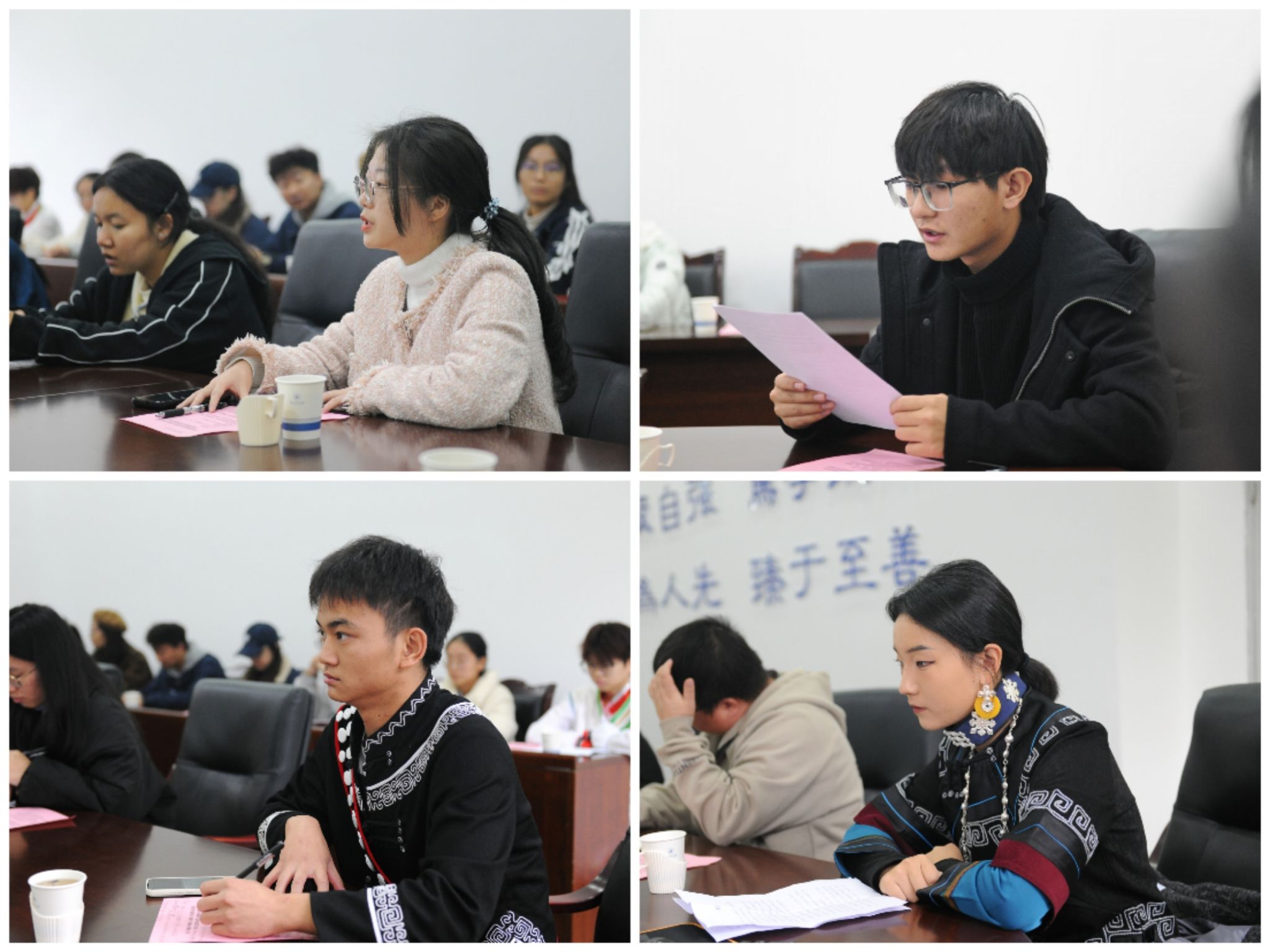 参会学生代表围绕习近平总书记在全国民族团结进步表彰大会上的重要讲话精神,从自身的成长经历、学习生活、民族文化风俗等方面分享了自己在家乡、大学的所学所获、所感所悟。