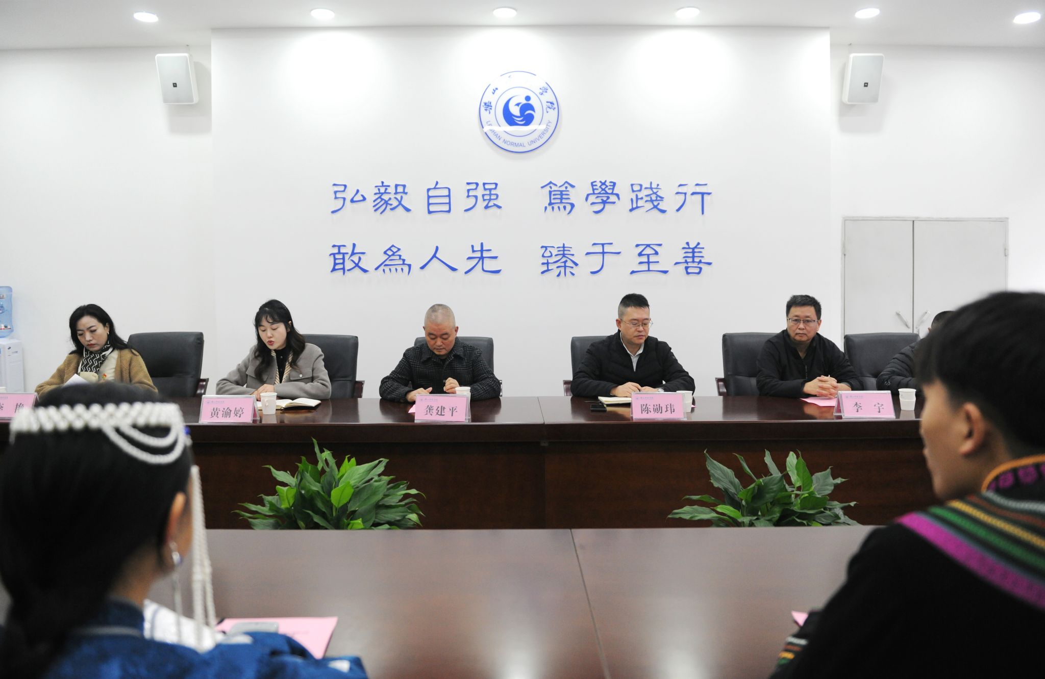 本网讯(文/丁壮 图/任志文)2024年11月21日,我校全国民族团结进步表彰大会精神专题学习会暨各民族师生代表座谈会在弘毅楼211会议室举行。乐山市民族宗教事务委员会四级调研员龚建平、政策法规科科长李宇,学校党委统战部副部长黄渝婷,党委学生工作部副部长陈勋玮,党委武装保卫部副部长兼学校民族团结进步促进会秘书长罗智勇,学校民族团结进步促进会副会长李艳,以及民族团结进步促进会会员、各民族学生代表出席会议。会议由黄渝婷主持。