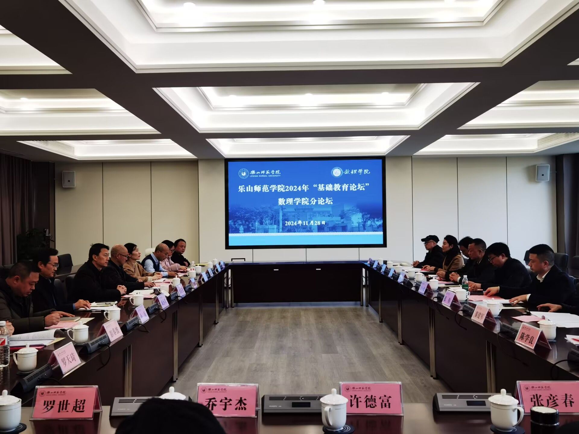 本网讯(文/于恩锋 图/余瑶)11月28日下午,乐山师范学院基础教育论坛-数理学院分论坛在学校弘毅楼第一会议室举行。本次论坛的主题是新形势下的师范生人才培养与课程改革。论坛共邀请到成都树德中学、峨眉第二中学、乐山草堂高级中学、乐山市第七中学、乐山实验中学以及四川百分优课教育科技有限公司等初高中学校和机构等10几名校长与教师参加。论坛由数理学院副院长于恩锋主持,乐山师范学院汪天飞副校长出席并致辞,数理学院全体班子成员、物理学与数学与应用数学专业负责人、教学法团队教师参加了论坛。