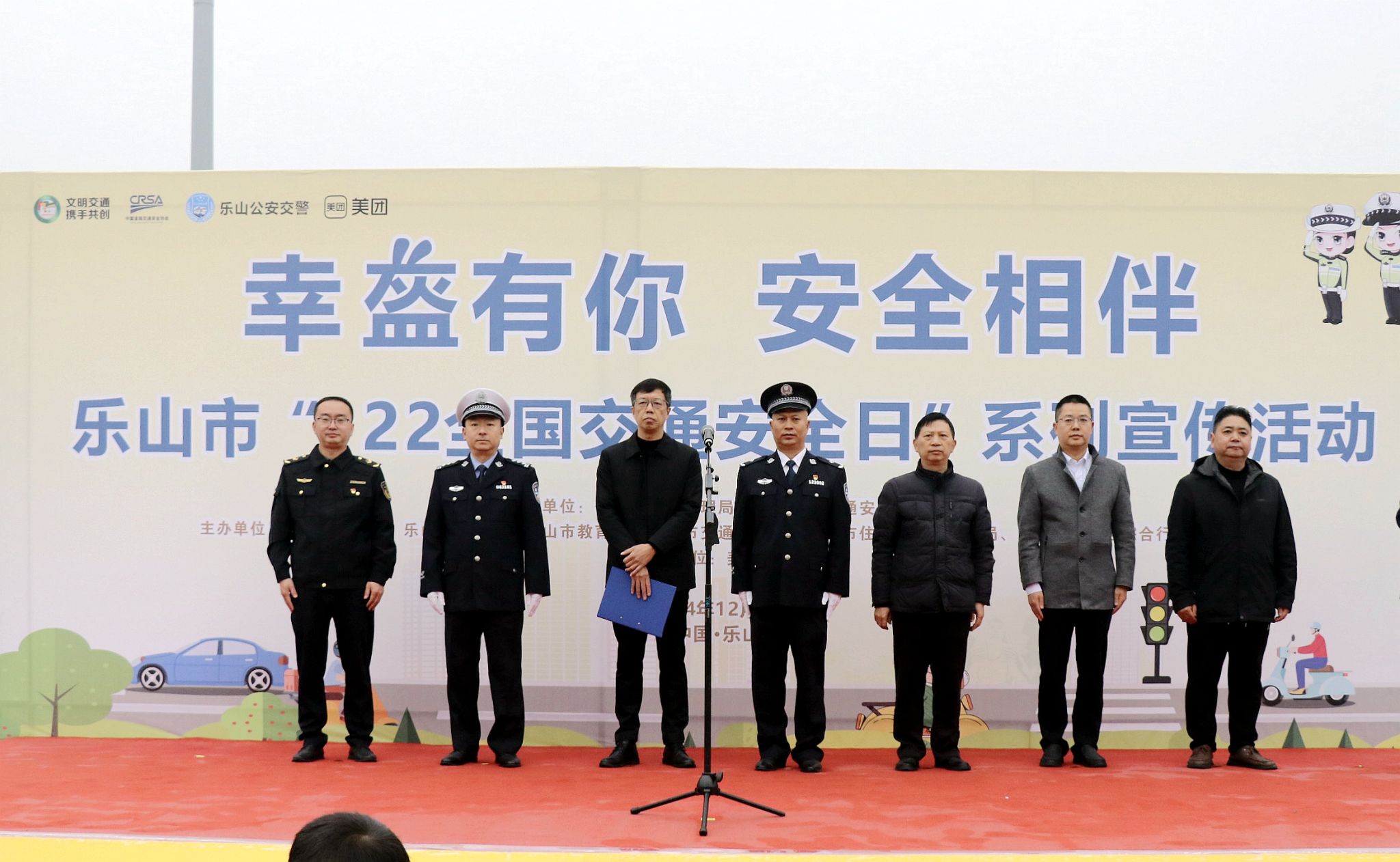 本网讯(文/刘颖 图/薛小丽)12月2日,由乐山市公安局、乐山师范学院、乐山市教育局、乐山市交通运输局、乐山市住房和地乡建设局、乐山市市中区综合行政执法局主办、美团骑行协办的第十三个“122全国交通安全日暨幸盔有你·安全相伴系列”主题宣传活动在我校举行。我校教师、学生、附属幼儿园家长代表等500余人参加活动。学校党委常委、副校长李朝晖,乐山市公安局党委副书记、常务副局长干航,乐山市公安局交警支队队长王东晓,乐山市教育局总督学罗仕金,乐山市交通运输局安全总监李成,乐山市住房和城乡建设局副县级领导张建华,乐山市公安局交警支队副支队长赵亮,乐山市市中区综合行政执法局党委组书记代小勇、美团骑行西南区运营负责人魏玮等领导和嘉宾出席本次活动。