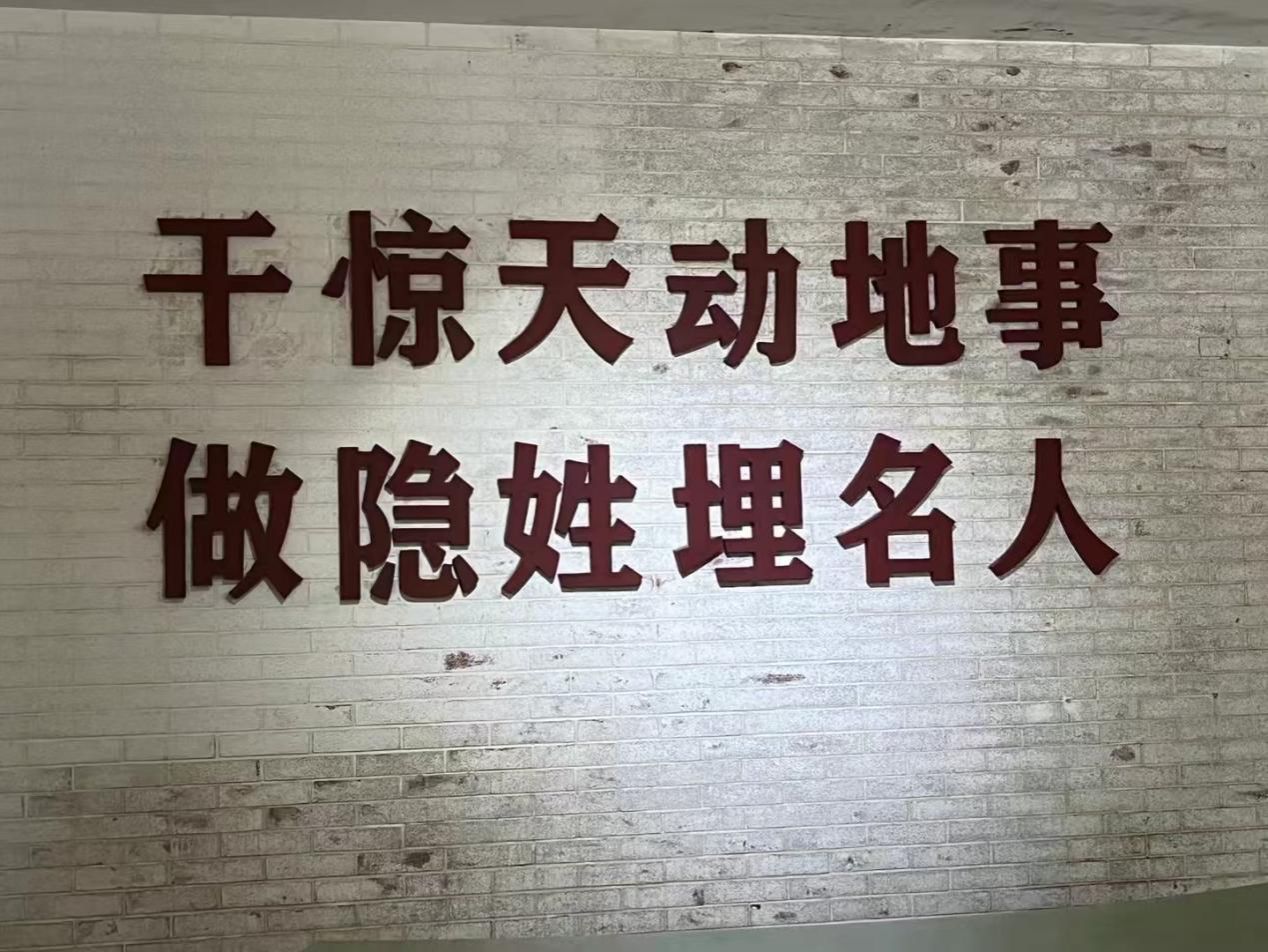 走进防空洞,队员们瞬间被墙壁上的标语所吸引。“国无防不立,民无防不安”“干惊天动地事,做隐姓埋名人”,这些振聋发聩的话语,仿佛穿越时空,在队员们的耳边回响。洞内空间狭小,光线昏暗,潮湿的气息弥漫其中。这里,正是邓稼先、于敏、王淦昌等众多院士曾经长期工作的地方。科学家们在如此恶劣的环境下,完成了多达29次核试验。他们在狭小的空间里紧张忙碌,将试验的危险和环境的恶劣全然抛诸脑后。每一次试验都是对未知领域的勇敢挑战,每一次成功都凝聚着无数科研人员的心血与汗水。