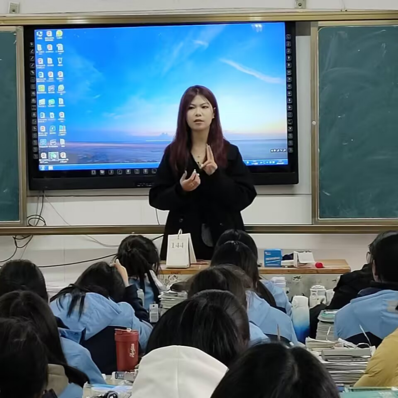 首先团队成员龚诗杰通过图文并茂的PPT,从“学科实力”“培养体系”“就业前景”三大维度展开介绍。PPT中展示了学院依托四川省特殊教育研究中心、国家级康复实训基地等平台,在融合教育、言语康复等领域取得的科研成果;通过动态图表呈现学院“双导师制”培养模式——校内导师夯实理论基础,校外行业导师指导实践技能,学生可深度参与“川渝特校联动支教”“社区康复公益服务”等项目。在讲解完后,由学院聋生泽仁曲珠为高三学子用手语进行了自我简绍,吸引力高三学子的兴趣。