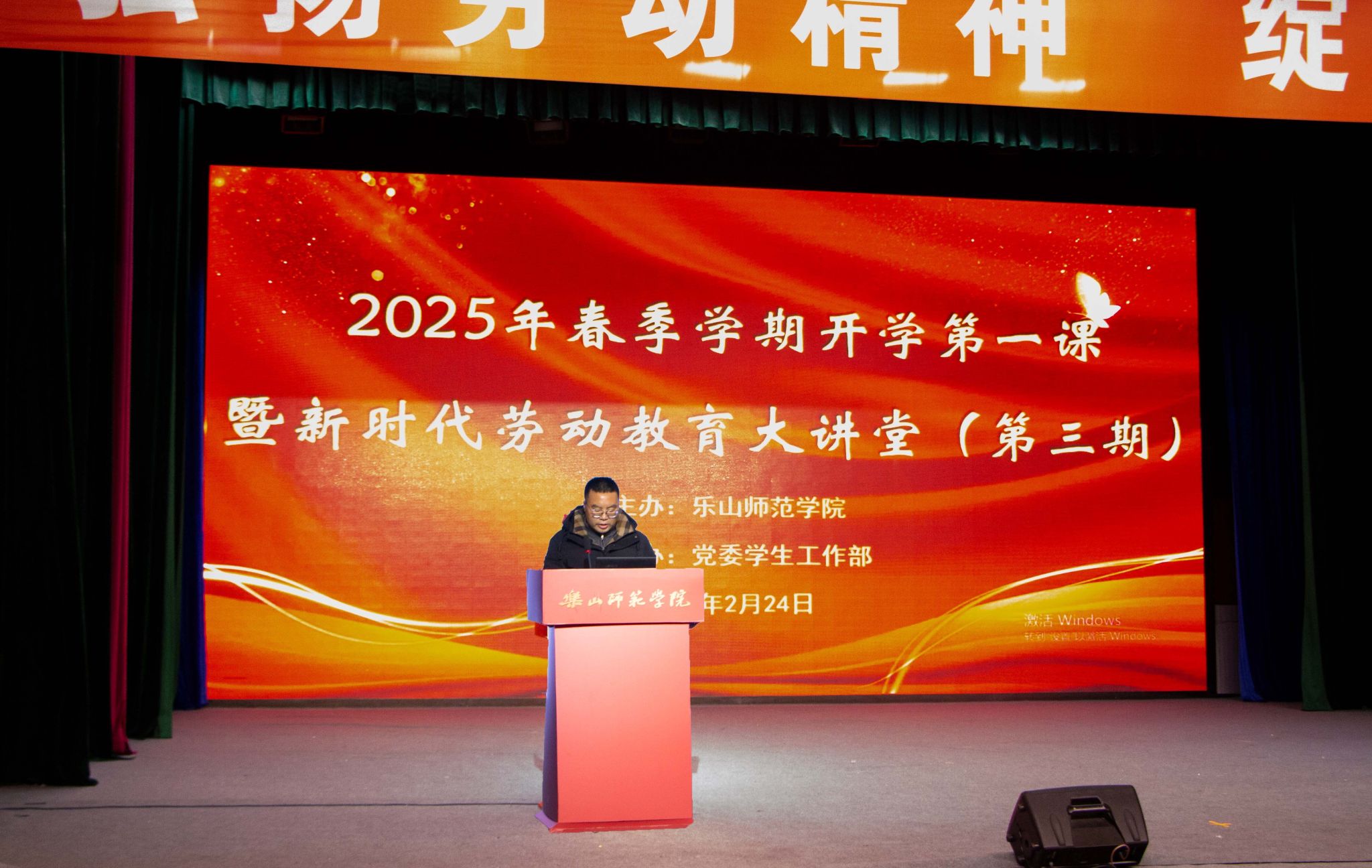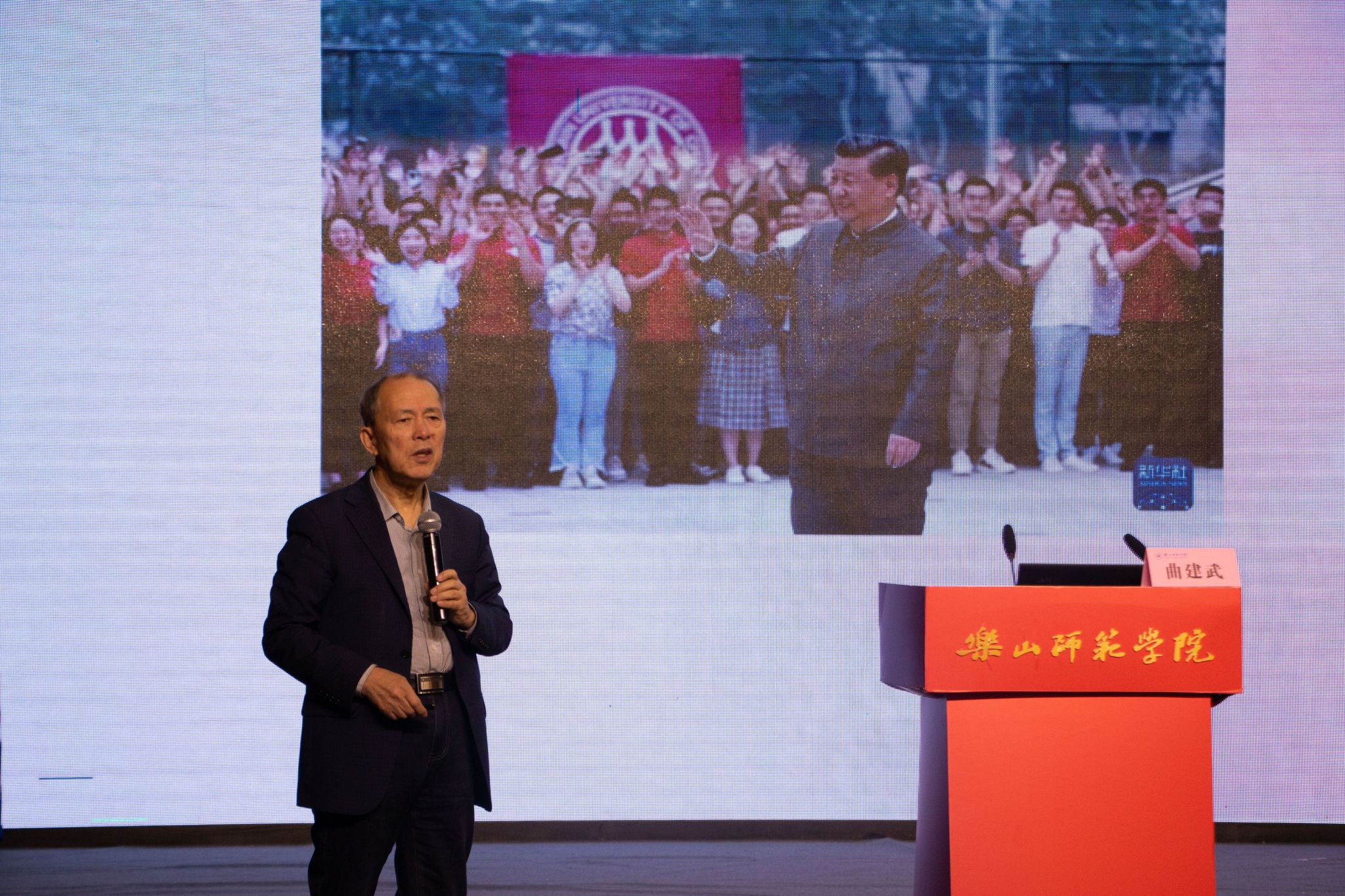 本网讯(文/李红英 图/朱菲)2月24日下午,在乐山师范学院实训楼多功能厅,全国知名教育专家、全国道德模范、时代楷模荣誉称号获得者曲建武教授以“在青春的赛道上跑出当代青年的最好成绩”为题,为乐师学子带来了一场精彩纷呈的专题讲座。讲座由党委学生工作部副部长胡平建主持,各教学院学生代表参加。