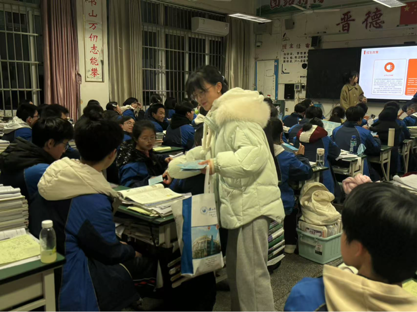 此次活动分为两个小组,分别于前往营山中学和嘉陵一中进行宣讲。小组成员通过讲解PPT和分发宣传手册的方式向高中学生介绍乐师的各方面特点。同学们停止了手中的一切看向了讲台,有的安静的聆听着宣讲者的描述,有的非常好奇的问这问那,小组成员一一回答了同学们的疑问。宣讲结束时,还给同学们分发了棒棒糖,算是对紧张乏累的高三生活增添一味调剂。