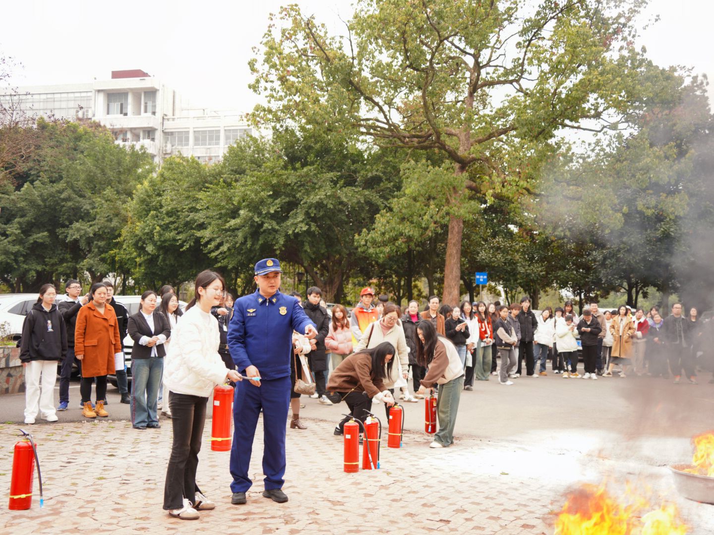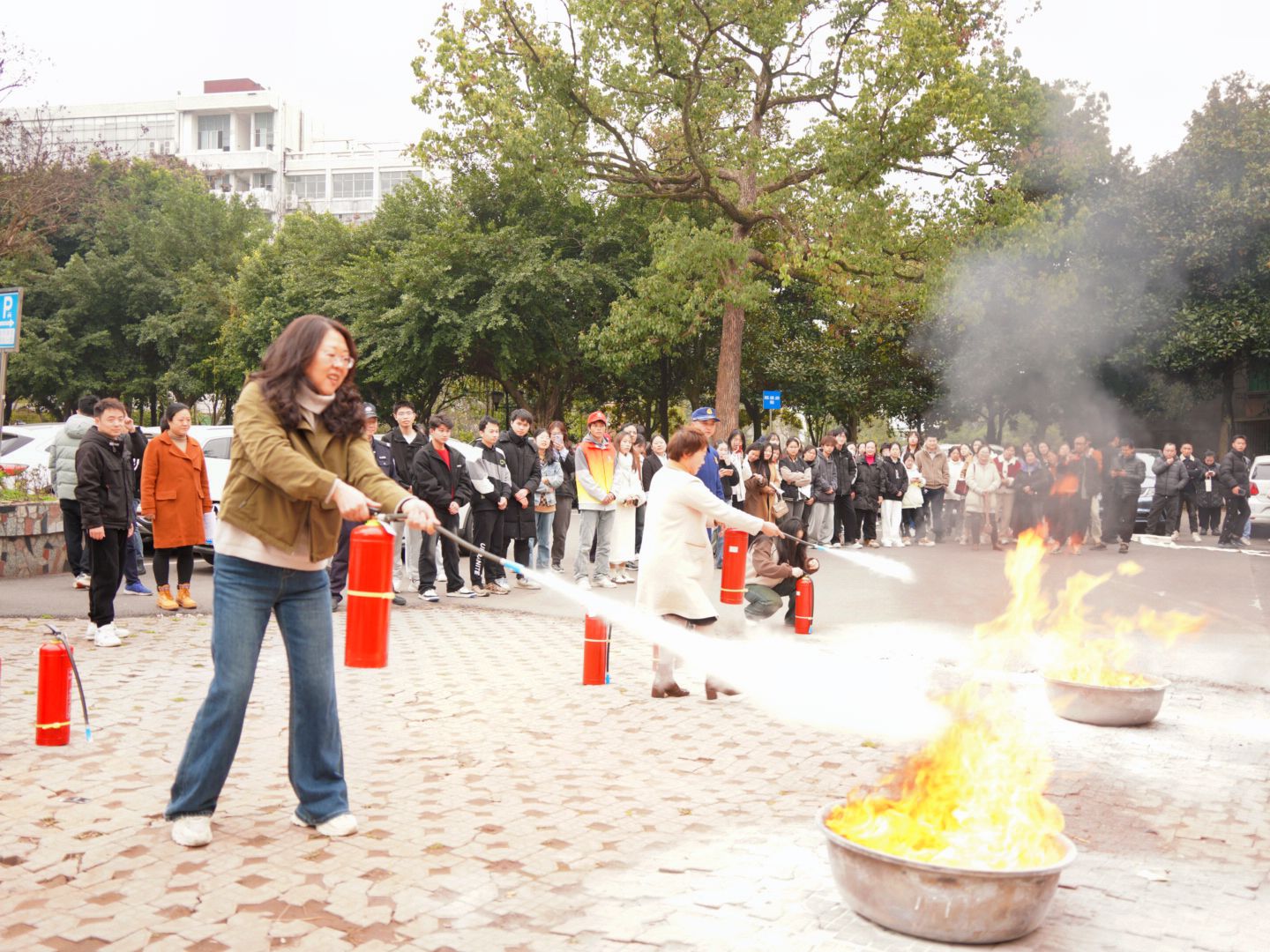 在实操环节,张兆平现场演示了灭火器、消防栓等常用消防器材的使用方法,并指导师生们进行实际操作演练。师生们热情高涨,积极参与,切实掌握了消防器材的正确使用方法和扑救初期火灾的技能。