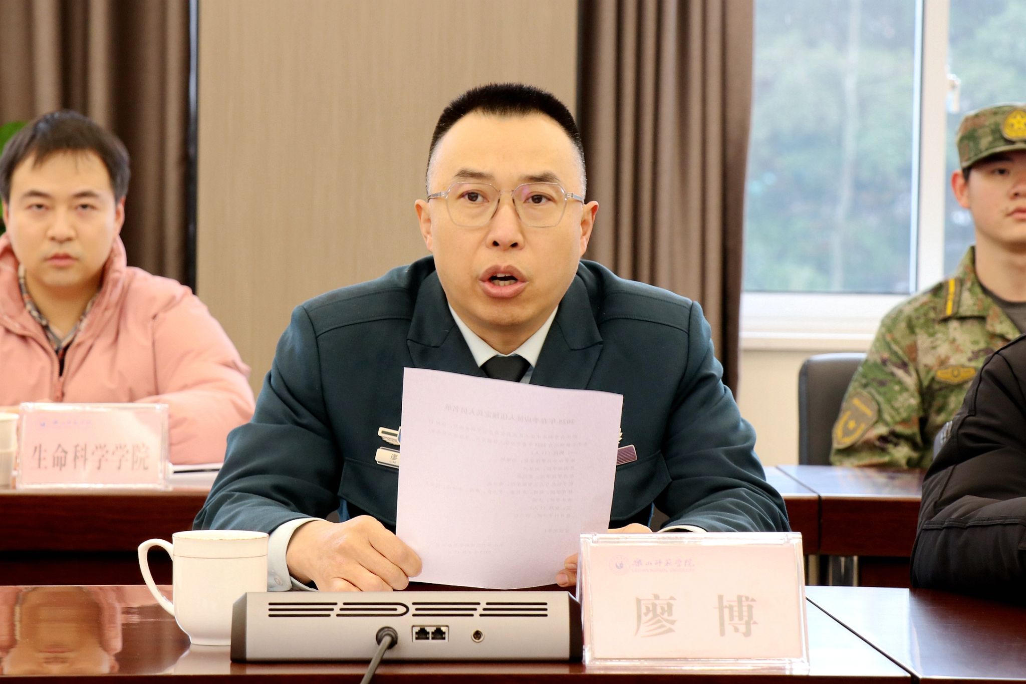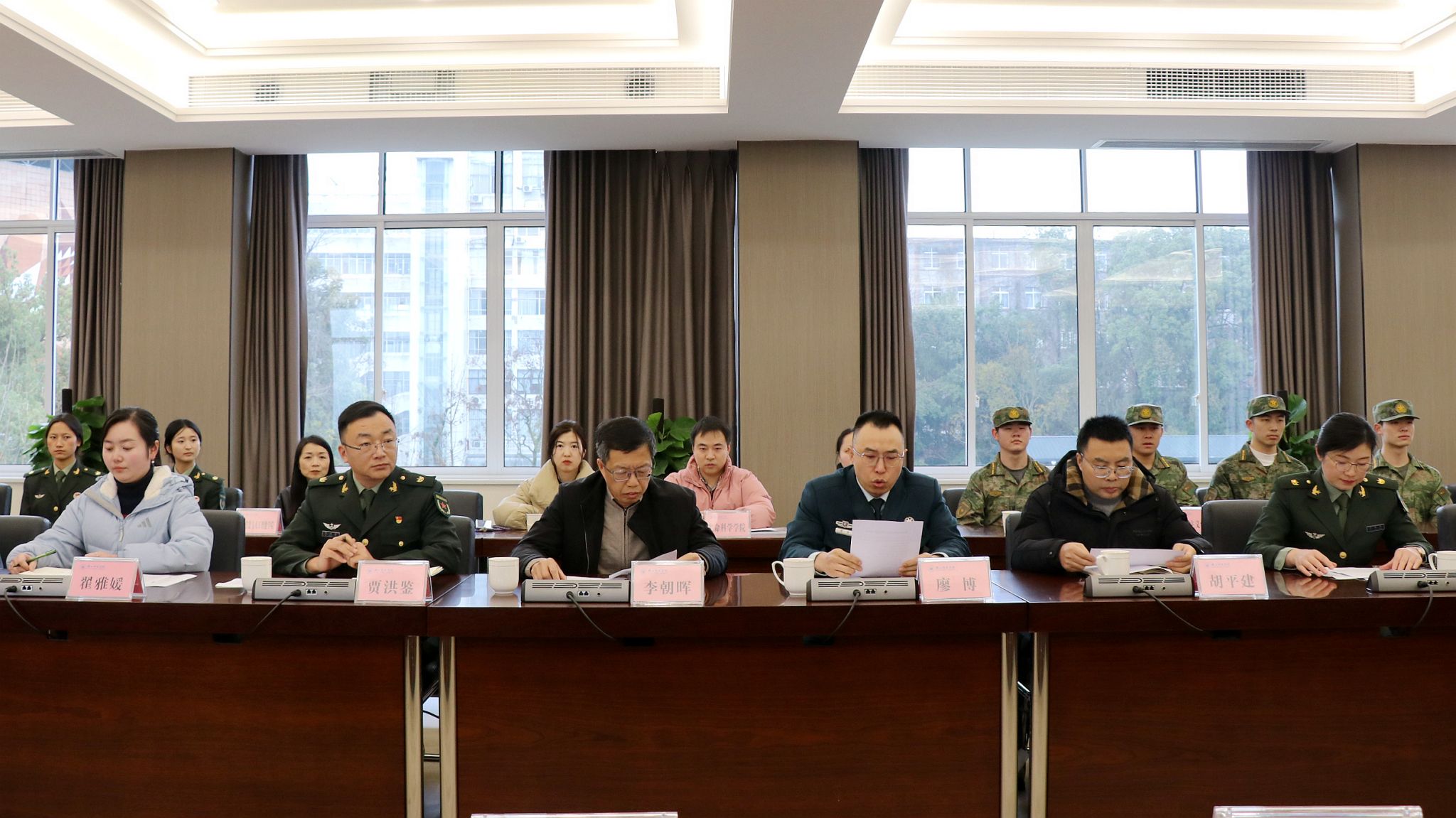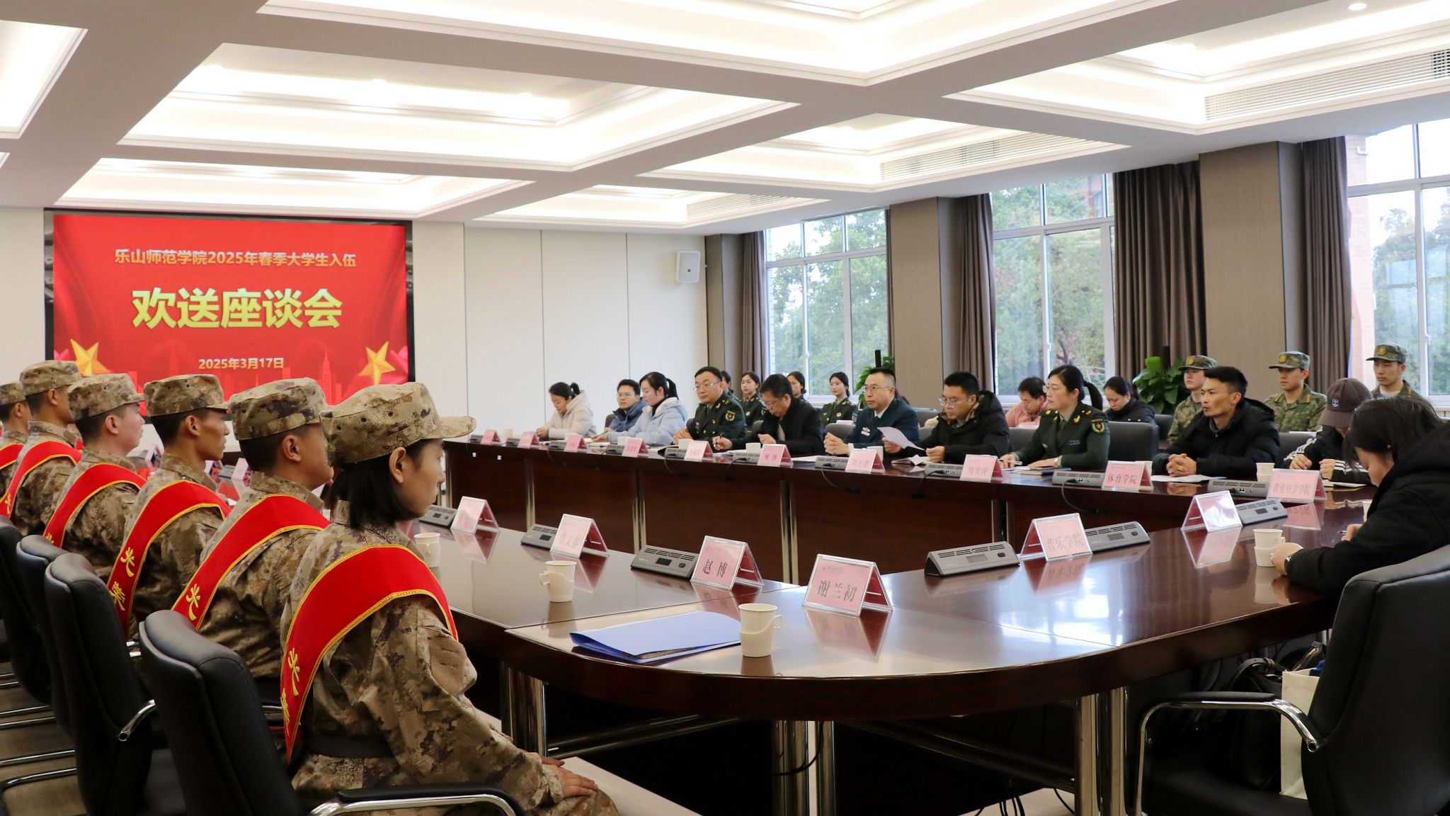 本网讯(文/杜颖 图/薛小丽)三月春风鼓角鸣,新兵入伍赴征程。3月17日,我校2025年春季大学生应征入伍欢送会在第一会议室召开。党委常委、副校长李朝晖出席并讲话。乐山军分区,学校武装保卫部、学生工作部、校团委相关负责人,教学院党委副书记以及春季入伍学生、家长代表和军事特长生参会。