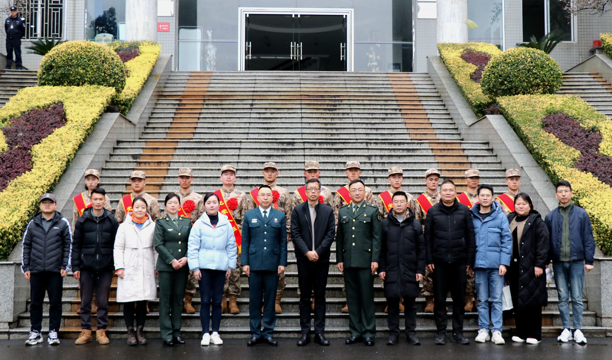 座谈会后,参会人员与应征入伍新兵合影留念并欢送他们踏上新征程。
