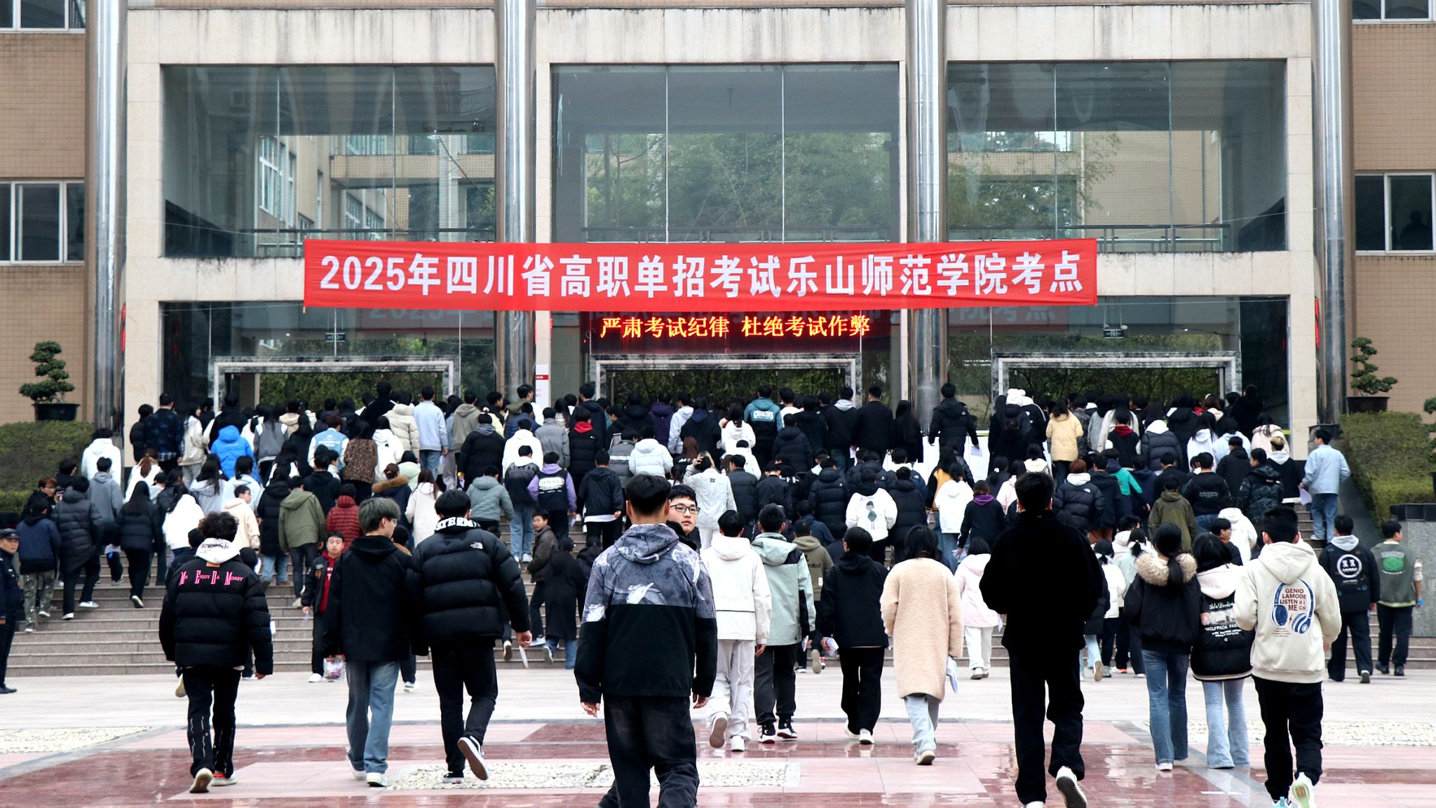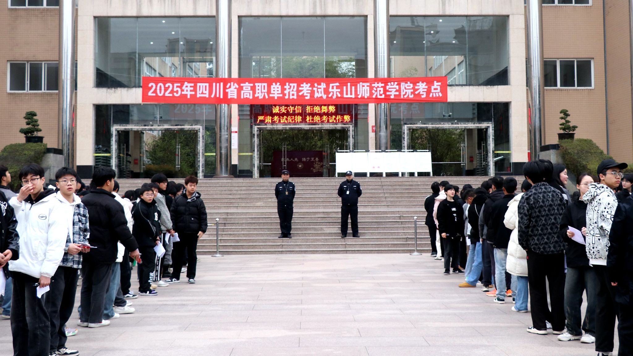 本网讯(文/李过 图/包玲)四川省2025年高职教育单招考试于3月22日举行。乐山师范学院考点共设置143个考场,中职类学生619人,普高类学生3653人,涉及了4272名考生。550余名工作人员参与了考务工作。乐山师范学院考点对高职教育单招考试工作精心部署,各项工作准备充分,抓落实到位,与宣传、网信、公安、卫健、保密、电力等部门通力配合,全力做好考试组织各项工作,确保考试取得圆满成功。