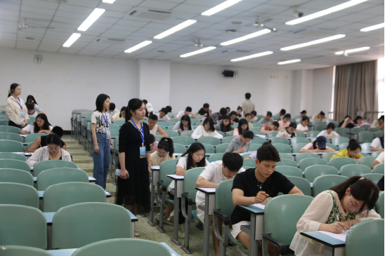 笔试环节,实行百分制,题目内容涵盖党的二十大和二十届二中、三中全会精神,党史与国史学习教育、西部计划与志愿服务等相关理论等方面内容,旨在全面考察考生的政治素养、知识储备和综合能力。考试过程中,考场上安静严肃,考生们专心致志作答,认真书写着自己对投身西部的热忱与决心。