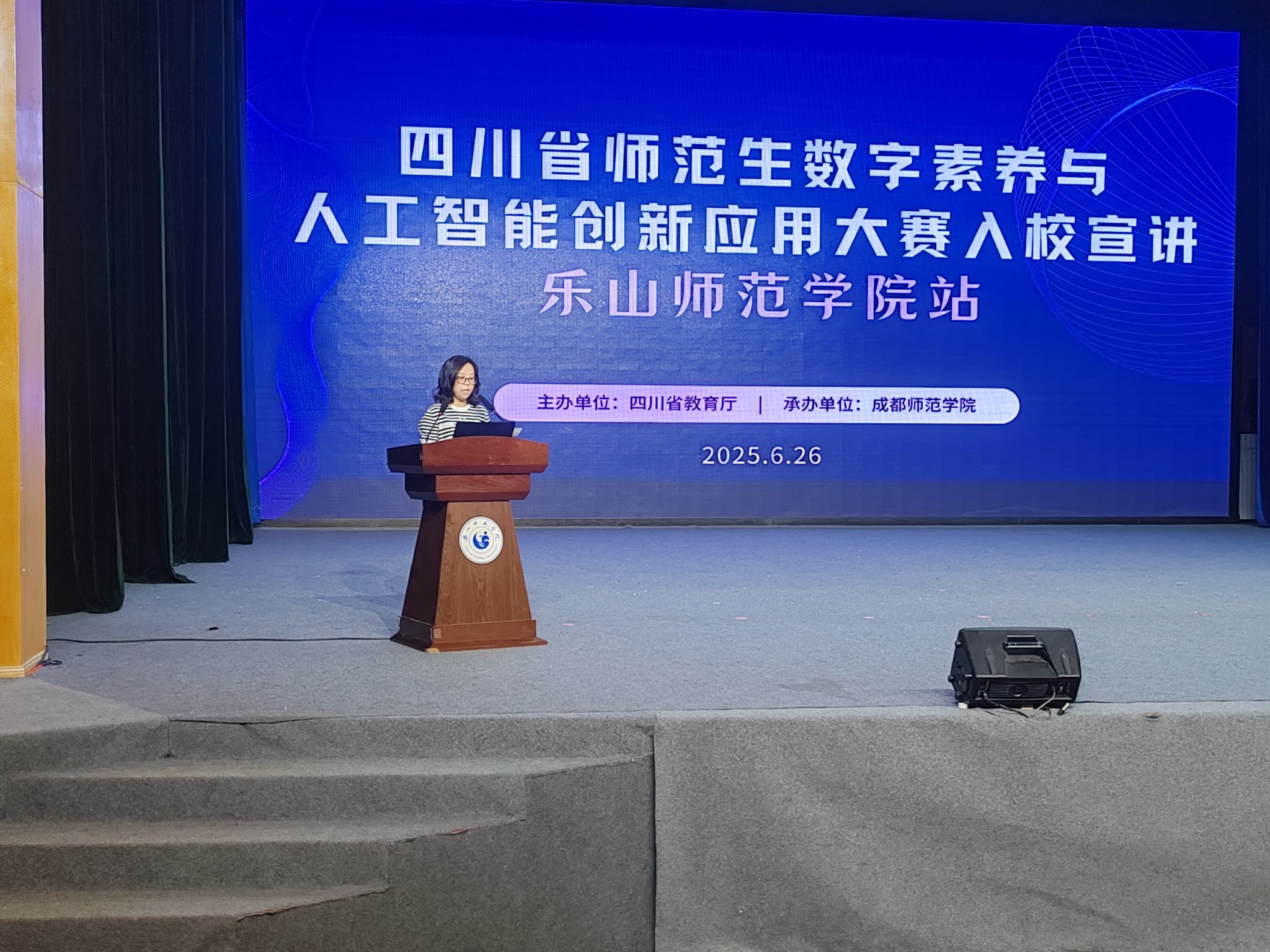 根据四川省教育厅《关于举行2025年四川省师范生数字素养与人工智能创新应用大赛的通知》文件精神,为了有序组织我校学生参加本项比赛,学校信息技术与实验保障处牵头制定了《乐山师范学院关于组织参加2025年四川省师范生数字素养与人工智能创新应用大赛的工作方案》,由教师教育学院、新闻与传媒学院、教育科学学院、电子信息与人工智能学院协同开展参赛作品的教学指导、内容审查、方案打磨等全过程工作。为了深入了解大赛的核心价值与参与路径,学校特别邀请到赛事承办单位成都师范学院的专家团队来校宣讲与培训,现场气氛热烈。