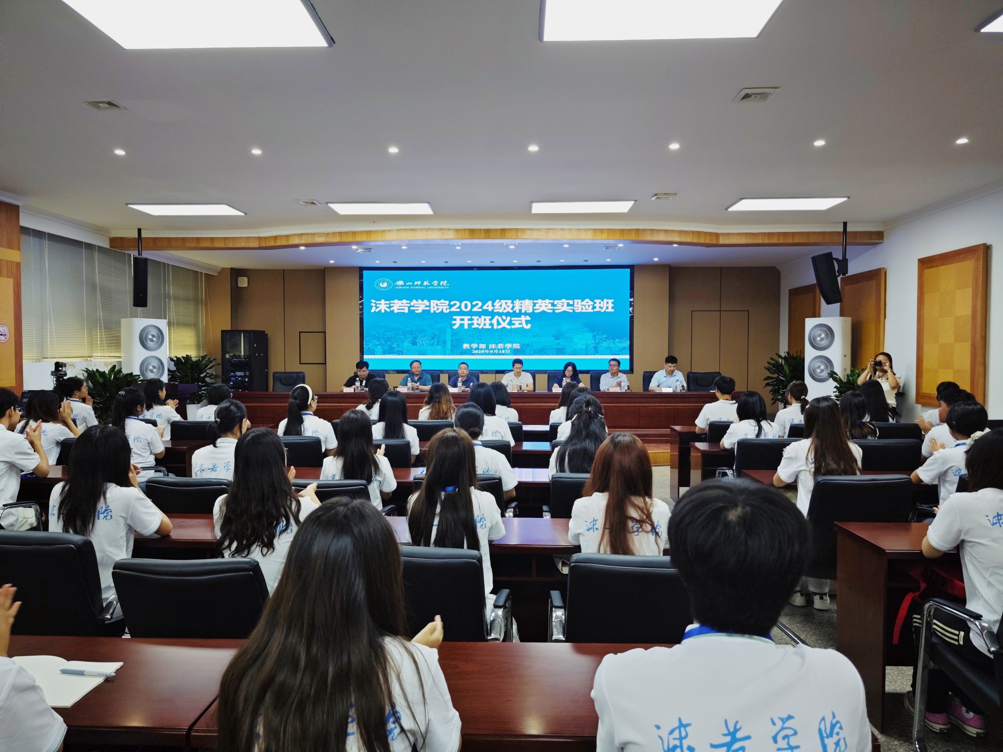 本网讯(文/陈欢 图/杨艾玉 )9月18日下午,我校沫若学院2024级精英实验班开班仪式在弘毅楼第三会议室举行。学校党委常委、副校长汪天飞、教学部部长、各精英实验班导师组组长、2024级全体学员及学院工作人员出席仪式。仪式由沫若学院执行院长李磊主持。