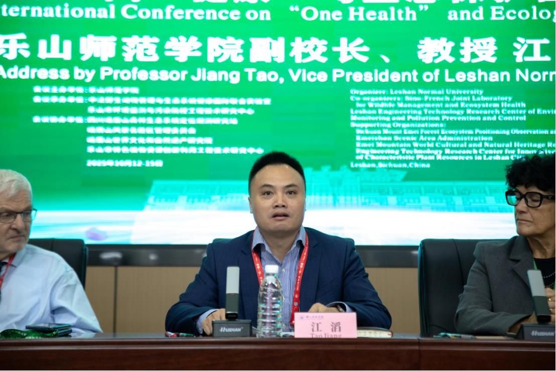 本网讯(文/孟繁增 图/康浩然)10月13-15日,由乐山师范学院主办,乐山师范学院生命科学学院、中法野生动物管理与生态系统健康国际联合实验室、乐山市环境监测与污染防控工程技术研究中心联合承办的“2025年‘同一健康(One health)’与生态保护国际研讨会”在我校举办。海内外60余位专家学者齐聚一堂,围绕“同一健康”理念下的生态保护与可持续发展开展跨学科对话。学校党委常委、副校长江滔教授、法国驻华大使馆科技专员贝海琳女士出席开幕式并致辞。