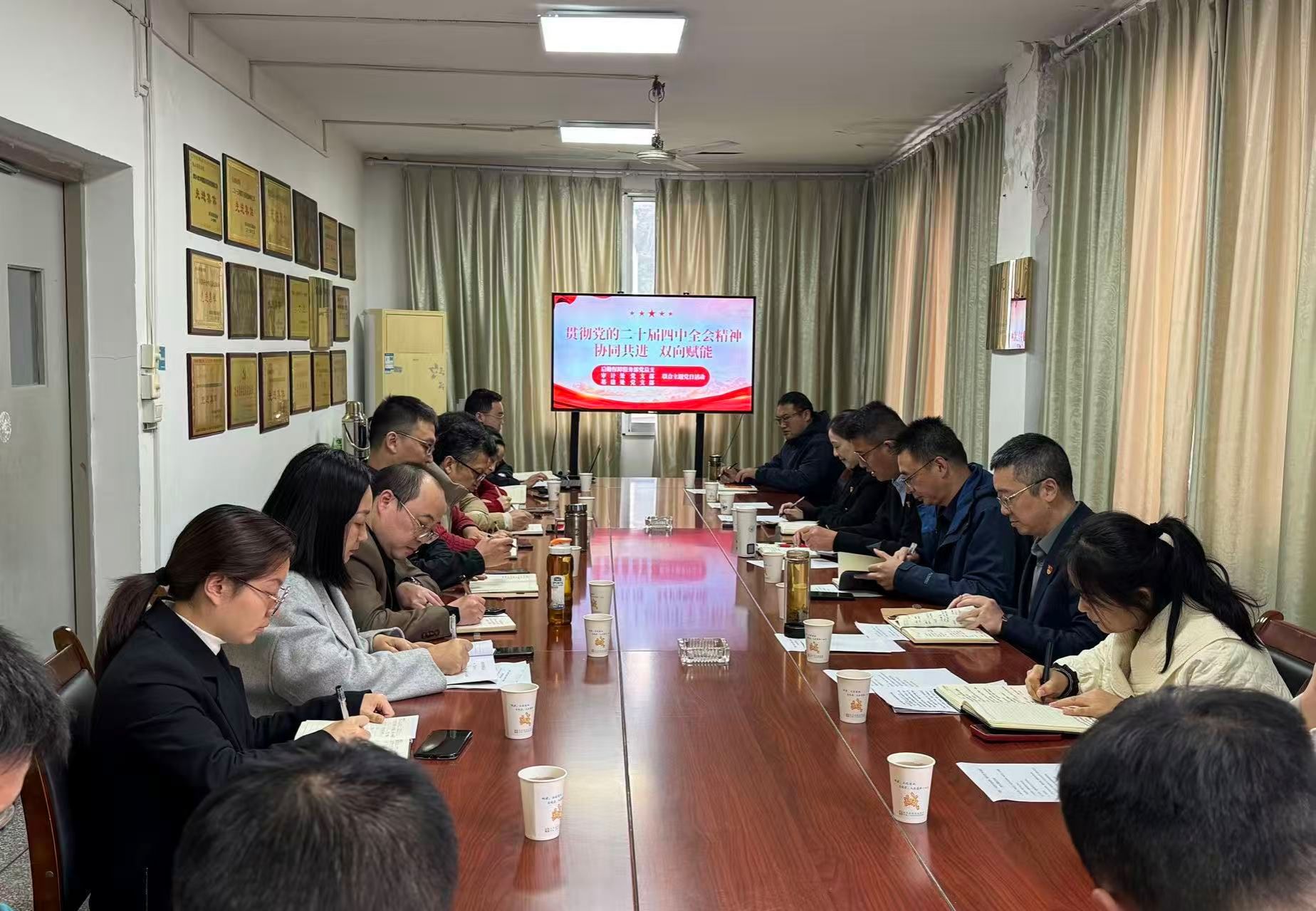 本网讯(文图/王斌)为深入贯彻党的二十届四中全会精神,推动党建与业务协同共进,双向赋能,11月6日下午,后保部党总支、基建处党支部、审计处党支部在后保部会议室开展“党建与业务协同共进,双向赋能”联合主题党日活动。校党委副书记、校长李方裕,三部门20余名处科级干部参会,后保部党总支书记钟大勇主持会议。